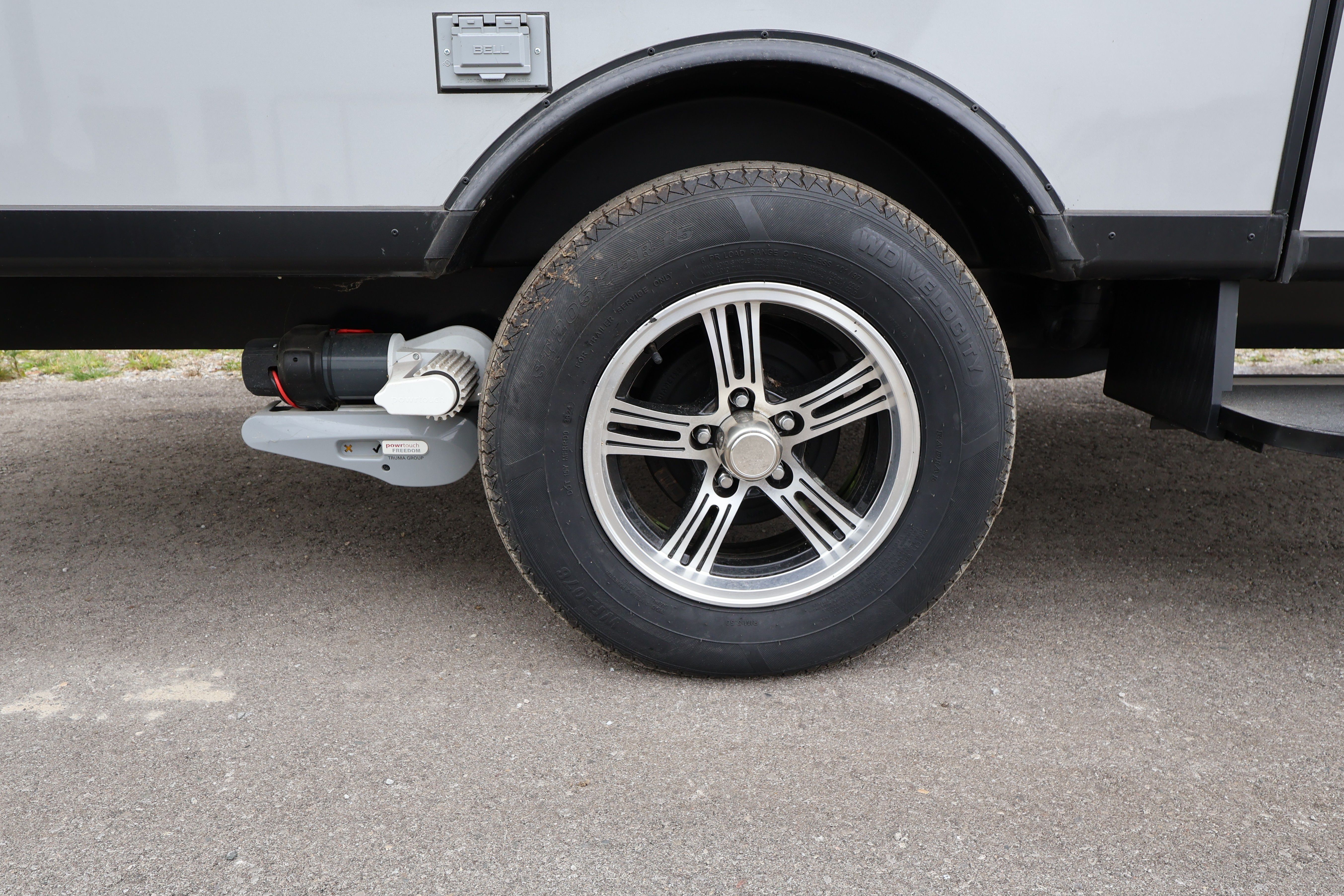 15” aluminum wheels with radial tires (13” option to fit trailer inside a garage)