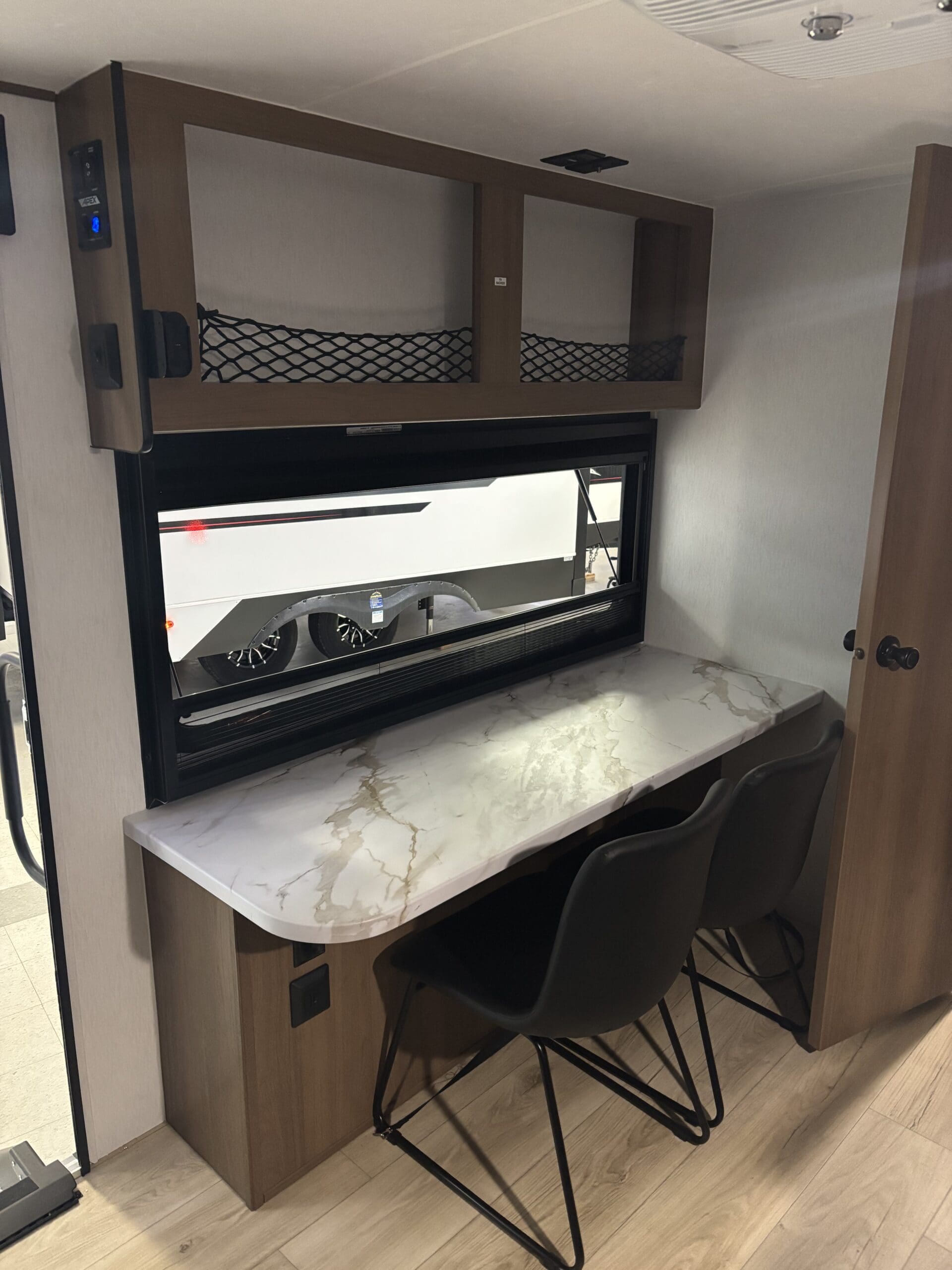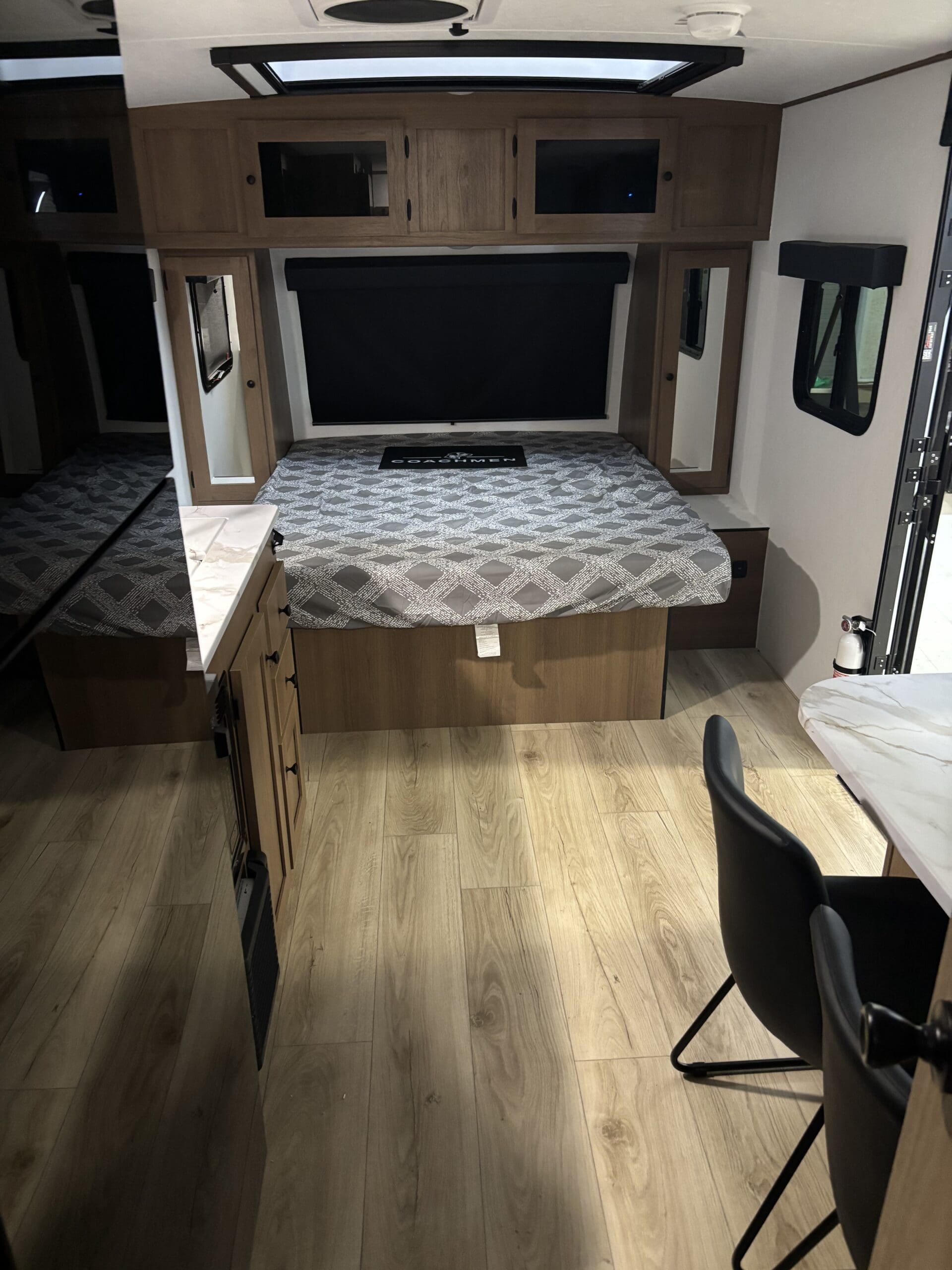 At just 21′ 5″ and under 3,500 lb. dry, the Apex Nano 181RB is a minimalist adventurer’s dream. It is light enough for SUVs or half-ton trucks, yet delivers 52 gallons of fresh water, a rear bath, indoor-outdoor bar top design, perfect for couples chasing big views and weekend escapes.