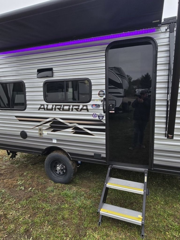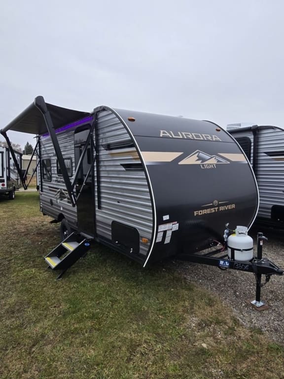 2026 Aurora Light 15RDX Travel Trailer MSRP – $36,961.00 SALE PRICE – $26,990.00Aurora Travel TrailersThe all-new Aurora has been designed to give customers a superior built trailer that comes packed with industry leading standard features to make your camping experience enjoyable and memorable. Our goal at Aurora is to provide the highest quality product with functional and distinctive features that will help you create memories that last a lifetime. Comfortability, usability, and quality were the core values when the Aurora was designed. We look forward to you joining the Aurora family!Features may include:ExteriorSolidStep Entrance Steps IPO Flip-Down StepsRear Ladder PrepElectric Awning w/ Multicolor Lights and Remote (16 Colors)Battery Disconnect SwitchMagnetic Baggage Door LatchesUniversal Solar Prep w/ Roof & Charge Controller Connections & WiringSiphon 360 Roof VentUpgraded JBL Elite Exterior SpeakerFriction Hinge DoorBlack Tank FlushG20 Privacy Tinted WindowsHeavy Duty Standard Tongue JackNitrogen Filled Radial TiresLeash Link D-Ring HookupExterior 110V GFCI Protected Receptacle (N/A Single Axles)Exterior RG-6 Coax Cabling and Satellite Prep (N/A Single Axles)Two 20 lb. LP Tanks on Aurora Light Tandem Axles (One on Single Axles)Spare Tire (Option on Single Axles)Rear View Camera PrepDiamond Plate Rock GuardRain Gutters w/ Drip SpoutsFlush Mount Baggage Doors w/ Radius CornersInteriorAll-In-One Control PanelFull GE Kitchen SuiteJBL Entertainment PackagePaper Towel HolderGE Stainless 10.7 cu. ft. 12V Refrigerator (3.3 on Xs)GE Stainless 3-Burner Gas Range on Tandem AxlesGE Stainless 2-Burner Gas Range on Single AxlesGE Stainless Microwave12V Power Vent Fan Above ShowerCarpetless Unit w/ Lino in Slide-OutEasy Access Kickboard Storage Underneath Jiffy SofaMatte Black Kitchen and Bathroom Faucets12V USB in KitchenABS Tub/Shower Surround (N/A on Xs)LED Interior LightingBedroom USB Surface Mounts(2)USB Surface Mount Near Bunk BedsJiffy Sofa w/ Flip-Down Cup Holder/Arm RestPedestal Thermofoil Dinette Table (FP Dependent)Hard Valance Window Treatment w/ Decorative LambrequinsBlack Nightshades in Living RoomShower/Coat HooksBathroom MirrorMirrored Wardrobes in Master BedroomUnderbed Storage w/ Separation from Outside Front Storage