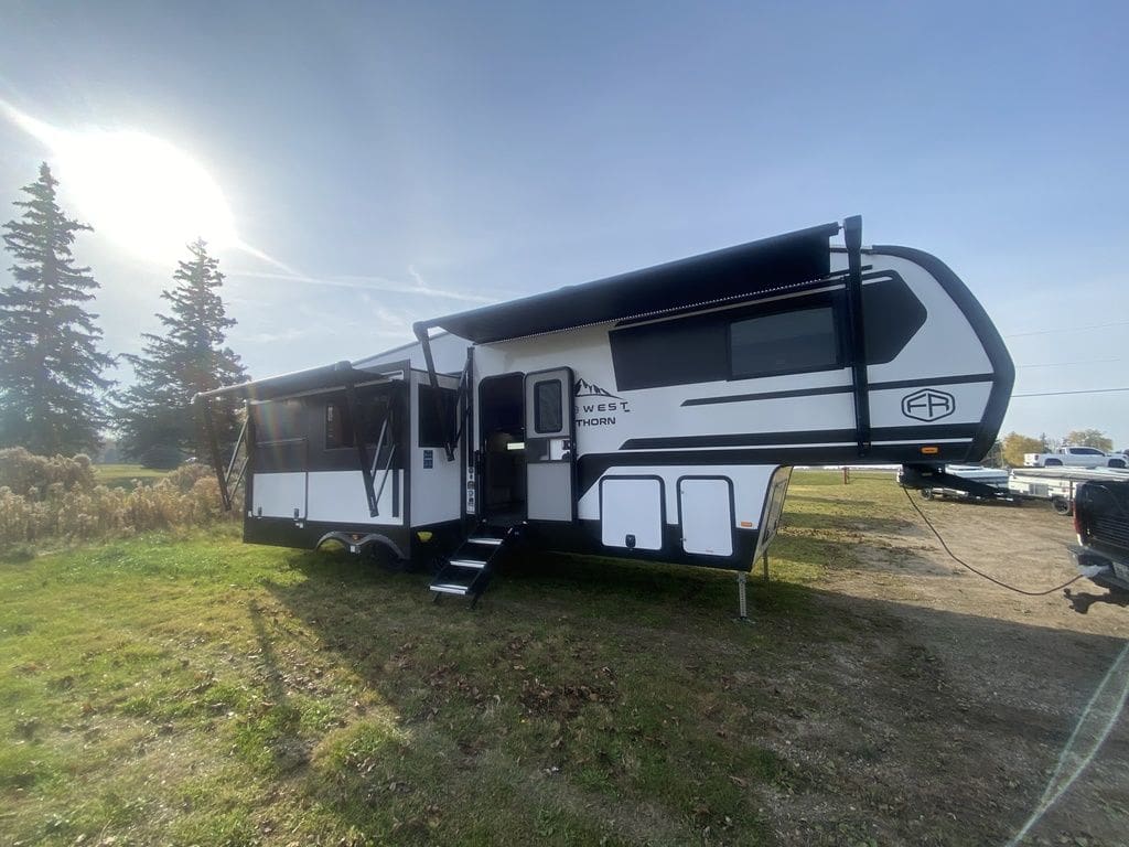 2026 East to West, INC. Blackthorn Half Ton 28RLK MSRP – $110,063.00 SALE PRICE – $79,763.00WEIGHS 9641LBS Well equipped including: -King bed -4 point electric auto level system – 2 X power awnings -200W roof mounted solar -Goodyear tires -2" towing hitch & MUCH MORE! EAST TO WEST RV’s new BLACKTHORN mid-profile fifth wheels combine a modern automotive exterior with quality construction, luxury features, and a stunning interior décor. Blackthorn is a species of flowering plant in the rose family that is a folkloric symbol for strength, overcoming adversity. Launching for the 2024 model year, BLACKTHORN fifth wheels will be shipping to select dealers across North America this August 2023.BLACKTHORN Half Ton Fifth Wheel series delivers a modern automotive exterior, quality construction, luxury features and spacious floor plans without maxing out the truck. With floor plans starting under 7,500 LBS and hitch weights below 1,400 LBS, BLACKTHORN Half-Ton Fifth Wheels can be confidently towed with many of today’s half-ton trucks.Features may include:Exterior2" Towing Receiver Hitch Rated for 300 LB Carrying Capacity and 3,000 LB Towing CapacityAlphaply™ TPO Roofing w/ Lifetime WarrantyCrane Max™ Gel Coated Fiberglass ExteriorDouble-Welded Aluminum Framed Sidewalls, Rear Wall, Front Bulkhead Wall & Slide-out RoomsDouble-Welded & Fully Framed Window, Entry Door, Cargo Door and Slide-out OpeningsDouble-Welded Aluminum Framed Floors50 AMP Electrical ServiceDetachable 50 AMP Power Cord w/ LED Power Indicator Light60 AMP Converter w/ Charge Wizard Technology & Lithium or Lead Acid Battery Selector SwitchAdjustable Power Awning w/ LED LightsHigh-Capacity Water Pump w/ Interior & Exterior SwitchEZ Access Low Point Drain ValvesMarine Grade LED Light at Sewer TerminationClear Cap on Sewer TerminationExtended Sewer Hose CarrierDual 30 lb. LP BottlesLP Quick-ConnectWinegard® Air 360+ TV Antenna w/ Wi-Fi PrepExterior Cable/Satellite Hookup in Pass-Through Storage or Outdoor Kitchen CompartmentsLED Motion Sensor Lights in Pass-Through Storage and Outdoor Kitchen CompartmentsSafety Light Kit: Entry StepsInteriorSolid Wood Shaker Style Cabinet Doors w/ Hidden HingesSolid Core Cabinet StilesPre-Drilled & Screwed CabinetryBall Bearing Full Extension Drawer GuidesVinyl Flooring in Living Area, Kitchen, Bathroom & Bedroom (No Carpet)10 Cubic Foot 12v RefrigeratorDeep-Seated Stainless Steel Farmhouse SinkRoll-Up Stainless Steel Drying RackHigh-Rise Kitchen Faucet w/ Pull-Down SprayerPorcelain Toilet w/ Foot FlushFree Standing Toilet Paper Holder w/ Magnetic Travel KeeperLarge Medicine Cabinet w/ MirrorExtra Large Seamless Lav Top w/ Undermounted Sink70” x 80” Serta® King Bed w/ Fitted BedspreadBedside Electrical Outlets & USB/USB-C Charging StationsBedside NightstandsOversized Underbed StorageBedroom Cable/Satellite HookupLED Interior LightingDimmable LED Ceiling Lights in Living Area & KitchenLED Motion Sensor Ceiling Lights in Bathroom HallwayLED Motion Sensor Light at Steps to Bedroom/Bathroom32" Marine Grade LED Shower LightDimmable LED Ceiling Lights in Bedroom&