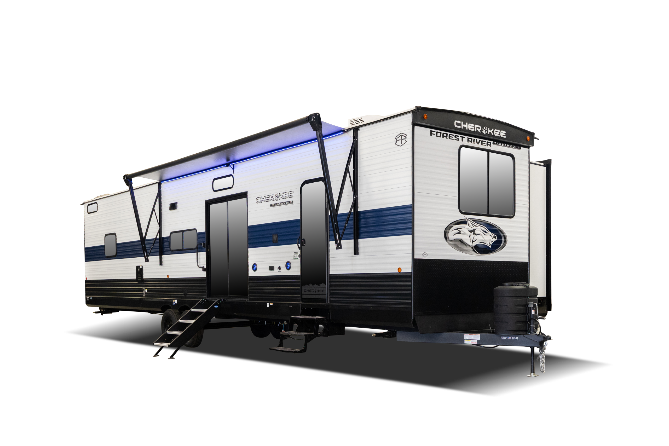 Step into the extraordinary world of permanent vacation living with the Cherokee Timberwolf 39HBA destination trailer. This isn’t just an RV; it’s a meticulously crafted retreat designed for those who demand the pinnacle of comfort and style in a long-term getaway. As soon as you cross the threshold, the expansive, residential-style layout greets you, offering a genuine sense of being “home.” High ceilings and massive, panoramic windows blur the line between indoor luxury and the natural beauty outside, flooding the space with light and offering breathtaking views. The gourmet kitchen, a chef’s delight, boasts full-size appliances, abundant storage, and premium finishes that make meal preparation a joy, whether you’re hosting a feast or enjoying a quiet coffee. The 39HBA thoughtfully separates living areas from sleeping quarters, providing privacy and tranquility in a spacious master bedroom that rivals many traditional homes, complete with generous wardrobe space and a comfortable queen or king-sized bed.
