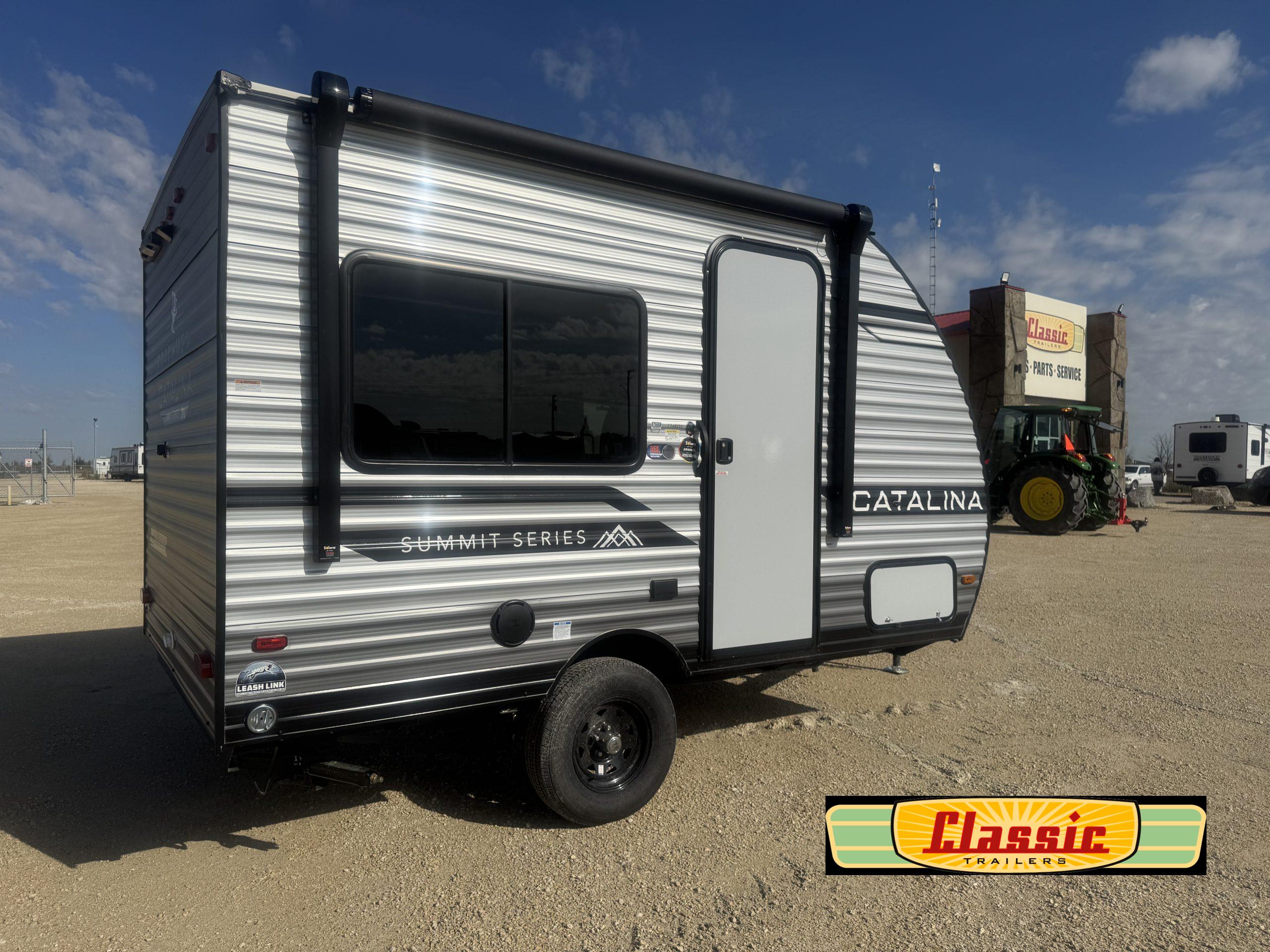 With any Catalina Summit Series 7′ by Coachmen RV, you can create an easier adventure with the versatility and simplicity of the shorter lengths and lighter weights! Each includes a premium exterior graphics package, a smooth HD aluminum radius front, and EZ lube axles with leaf spring suspension. The exterior offers a heavy duty standard tongue jack, a diamond plate rock guard to protect against road debris, exterior RG-6 coax cabling and satellite prep, rear view camera prep, and flush mount baggage doors with radius corners for your outdoor gear. Inside, you will enjoy a premium JBL interior speaker, USB charging ports, seamless Thermofoil countertops throughout, a deep basin farm style sink for easy cleanup, and GE kitchen appliances. It’s time to choose an affordable and maneuverable single axle trailer today!