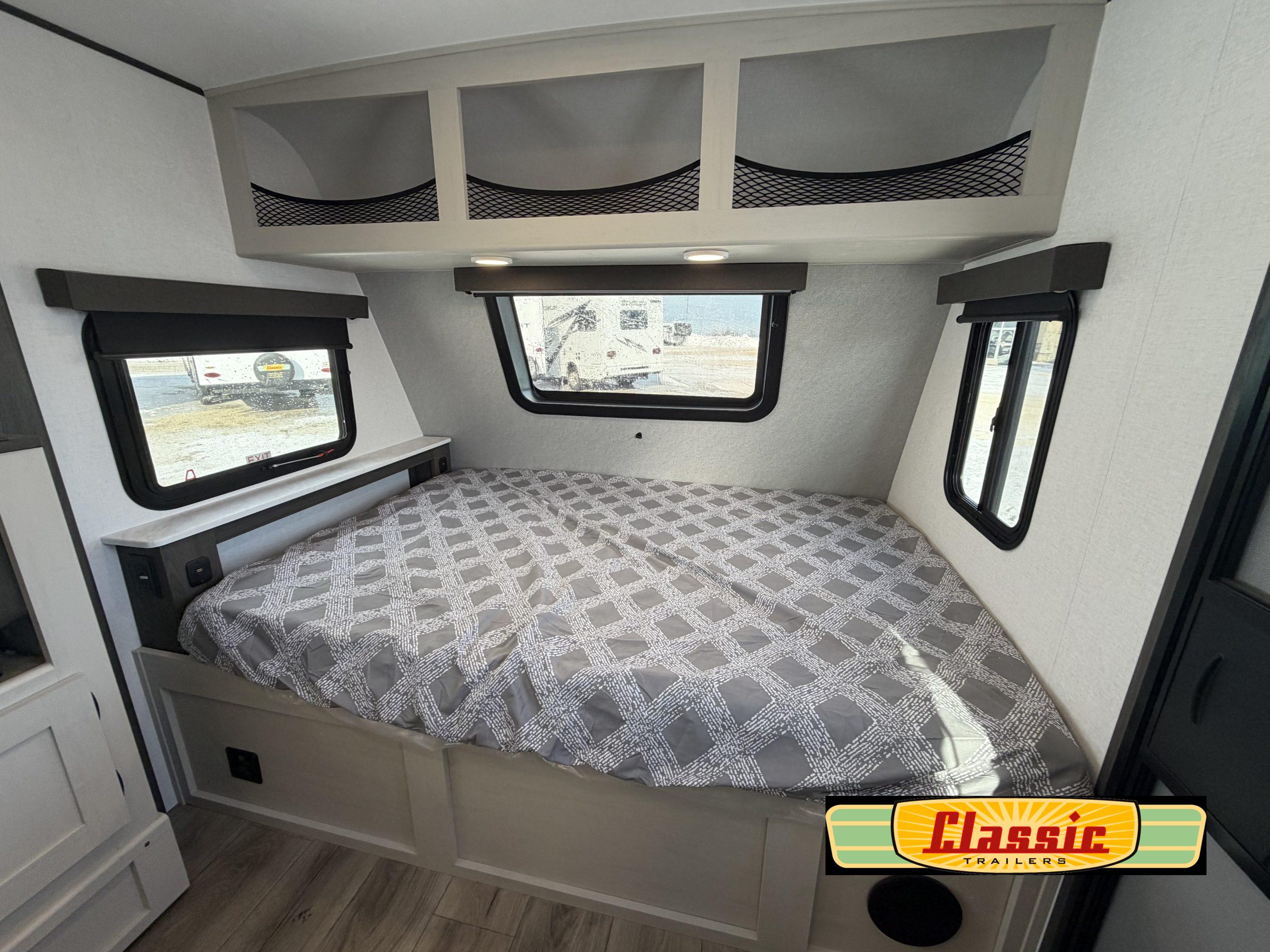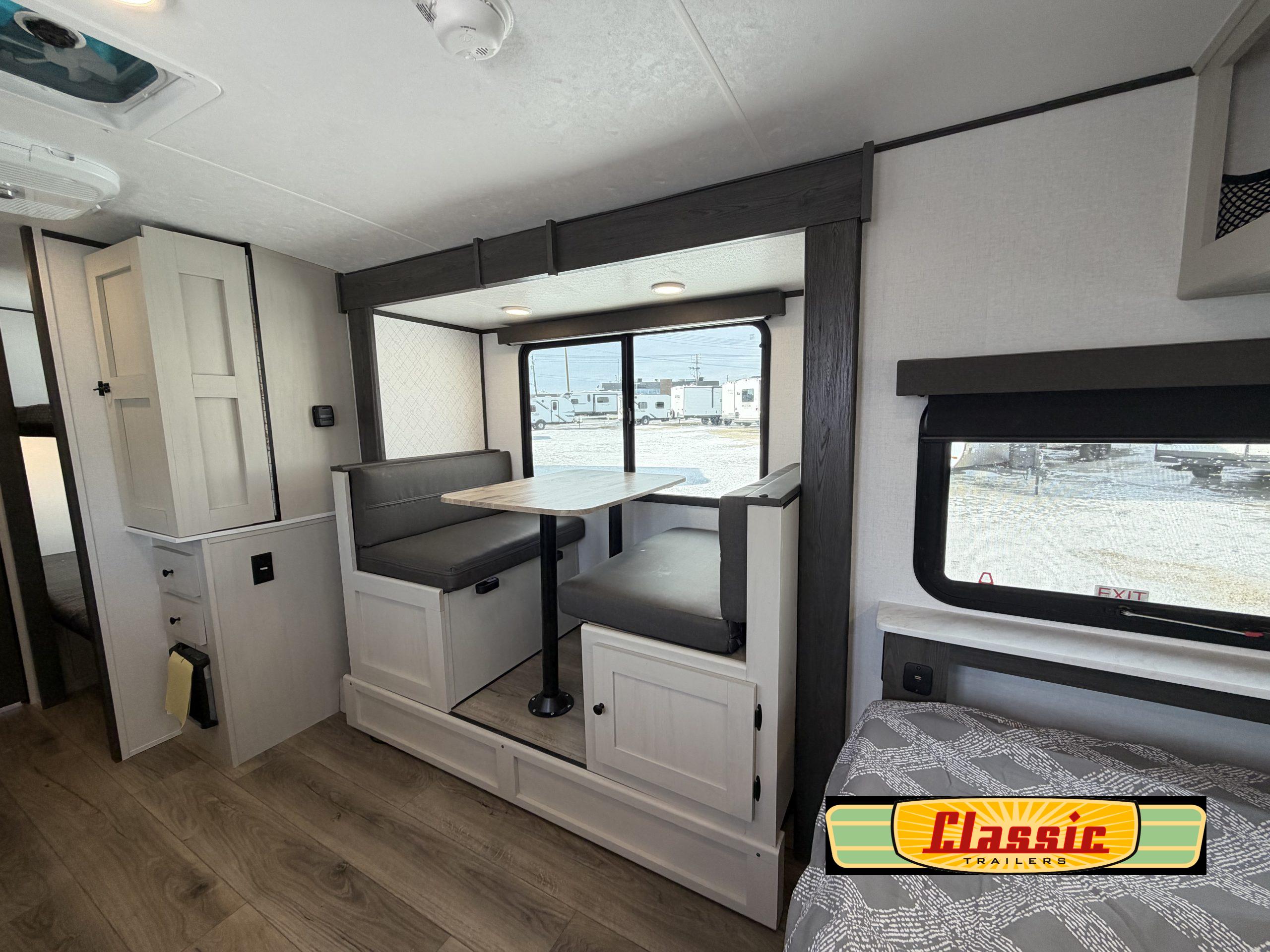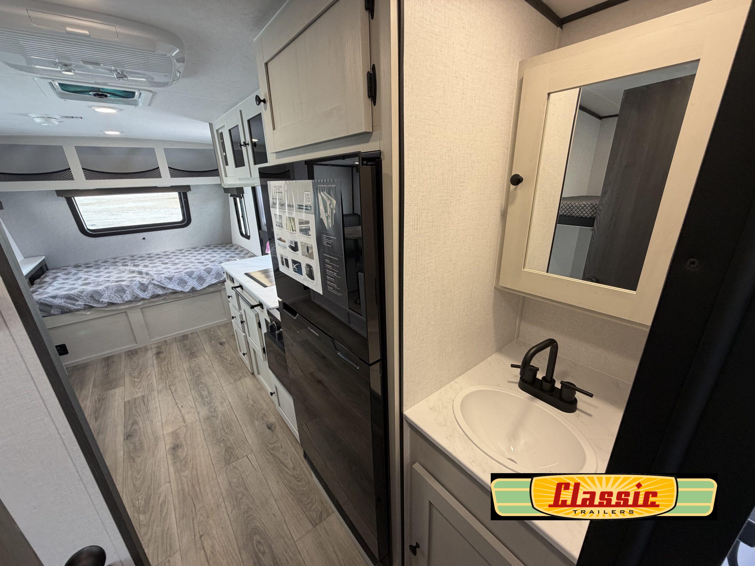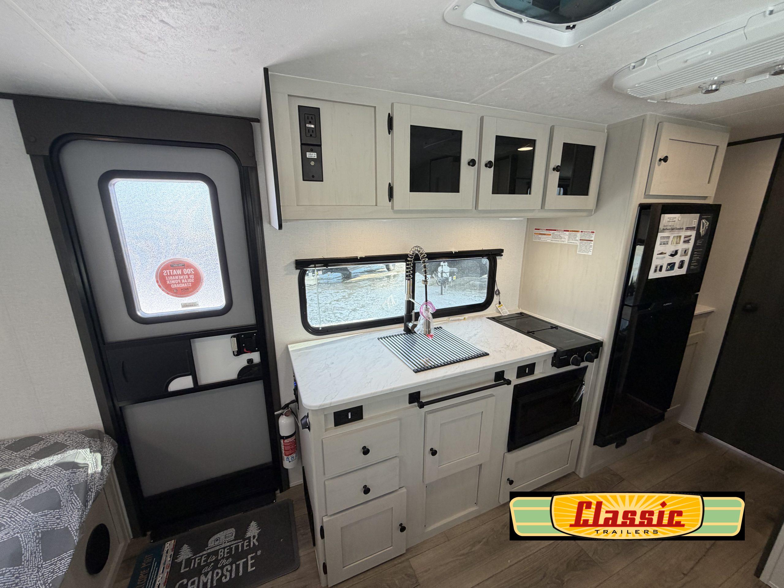 With any Northern Spirit Bijou travel trailer by Coachmen, you will find a solid built RV thanks to the dual Azdel laminated and aluminum framed sidewalls and rear wall, a fully walkable roof, plus a Darco subfloor protective wrap/enclosure. There is also a premium exterior graphics package, Keyed Alike compartment doors, a power awning with an LED light, and fishing pole storage in the front pass-through. The interior will have you feeling right at home with stylish night shades, seamless Thermofoil countertops, Congoleum linoleum flooring, and a stainless steel sink. The USB ports throughout will help you keep your electronics charged, and the TV prep will give you the option to add a television for entertainment.