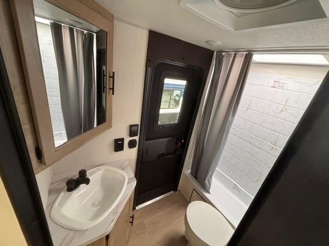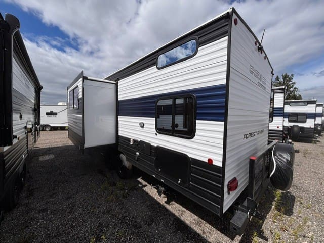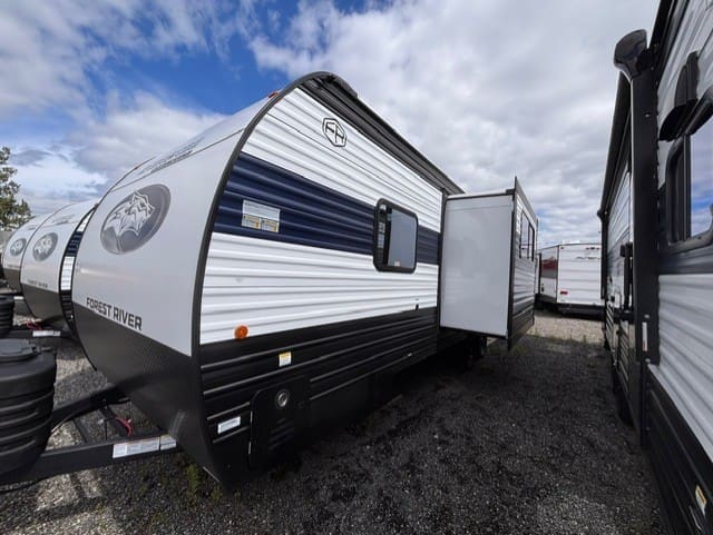 With sleeping space for up to 8 campers, smart storage, and convenient dual entry doors (including direct bathroom access from outside), the Grey Wolf 23DBH is designed to make camping easier and more fun for the whole crew.
