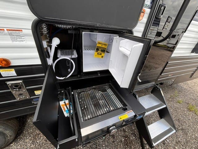 Outside is where the fun really begins! Fire up the outdoor kitchen, turn on the outdoor speakers, and relax under the 15-foot power awning while dinner cooks and the campsite vibes kick in.