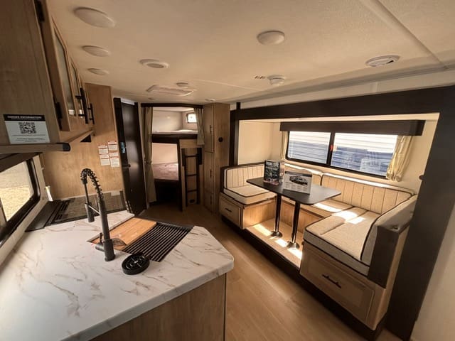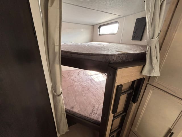 Inside, the double-over-double rear bunks give the kids (or extra guests) their own cozy hangout space after a full day of exploring. Up front, you’ll find a private queen bedroom that creates the perfect retreat for relaxing and recharging for tomorrow’s adventure.