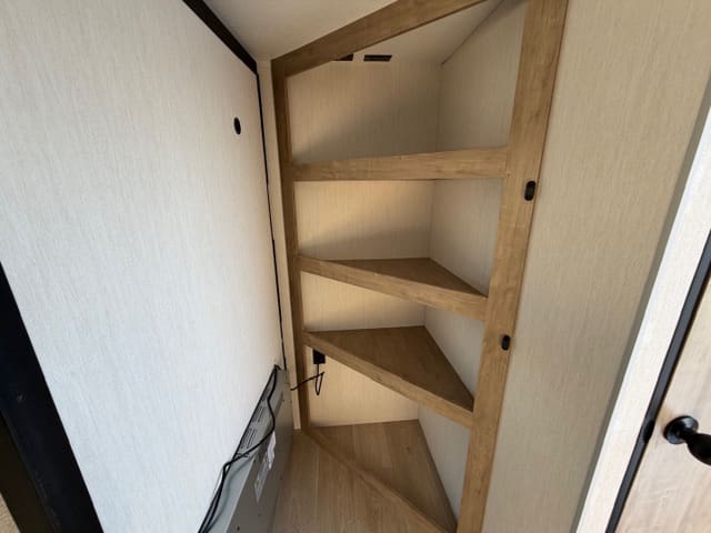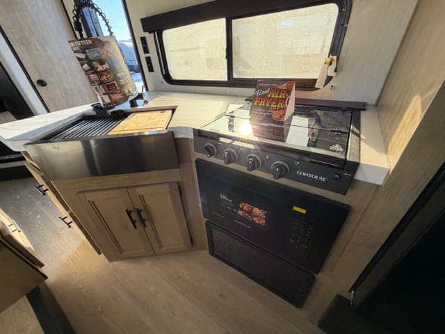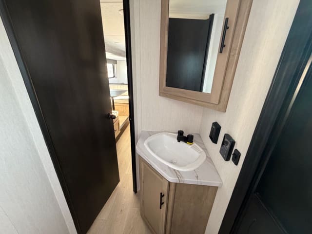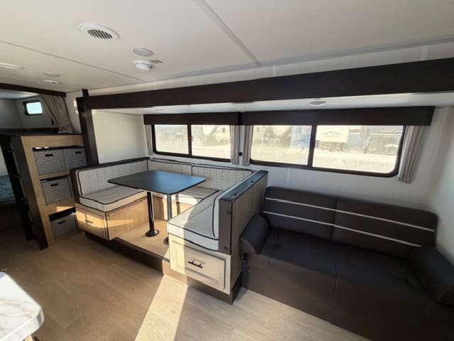 The mid kitchen is perfectly positioned for entertaining and everyday use, offering generous counter space, modern appliances, and storage where you actually need it. From quick breakfasts to campsite dinners, everything is within reach while staying connected to the living area—because the best camping moments happen together.