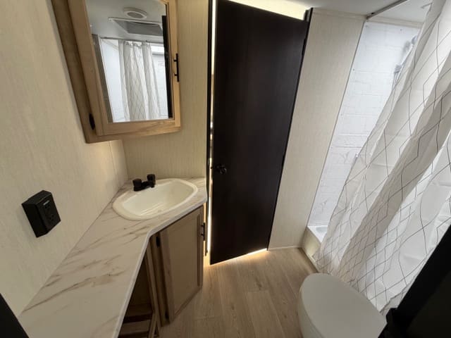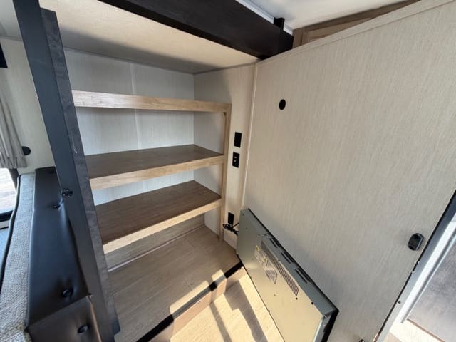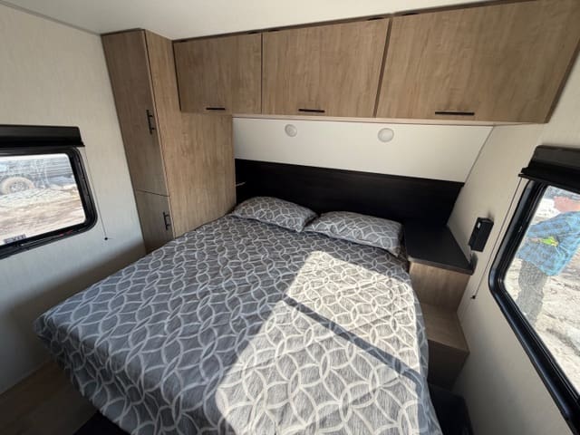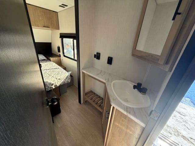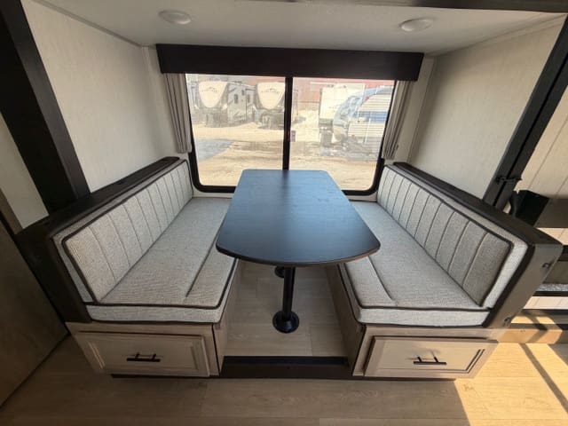 When it’s time to rest, the cozy sleeping areas provide peaceful comfort, while clever storage solutions keep your gear organized and accessible. Outside, the rugged build and practical features — like easy setup and dependable towing — make the 26SS ready for any campground.