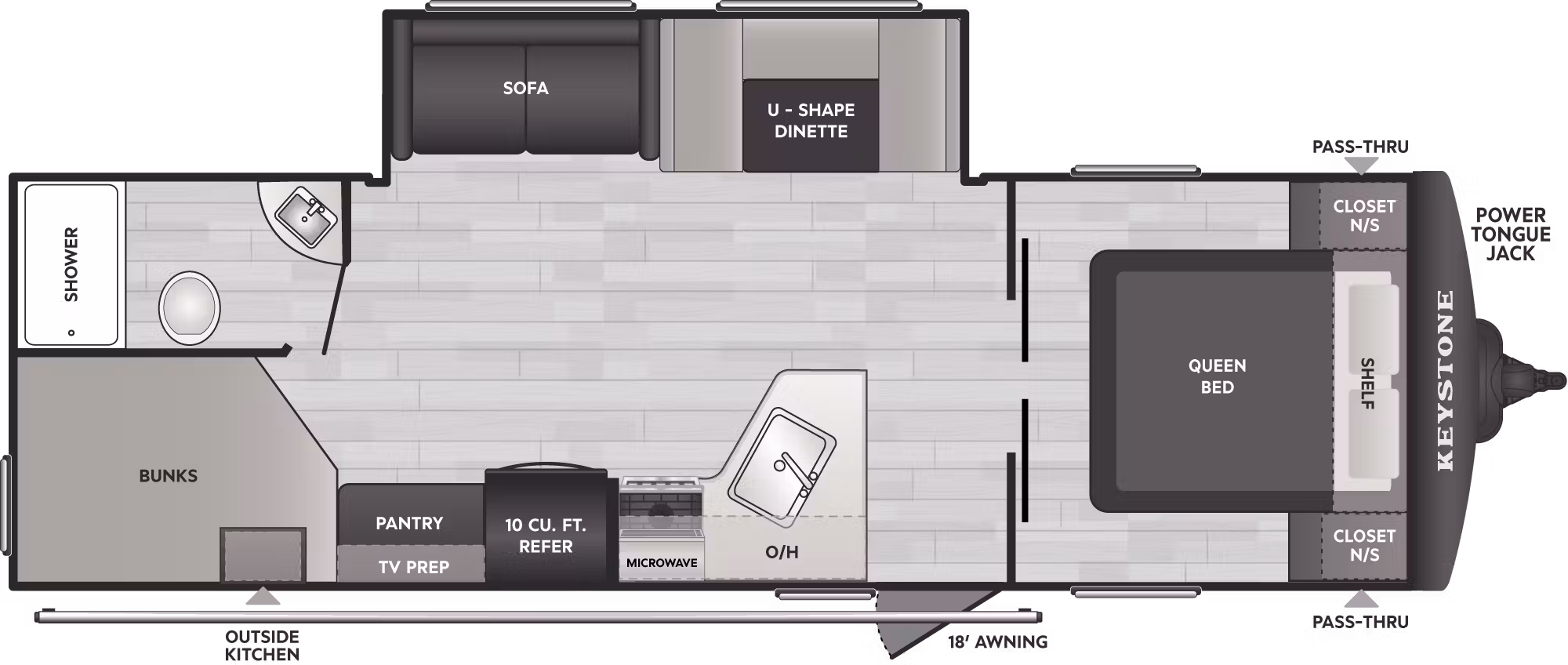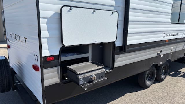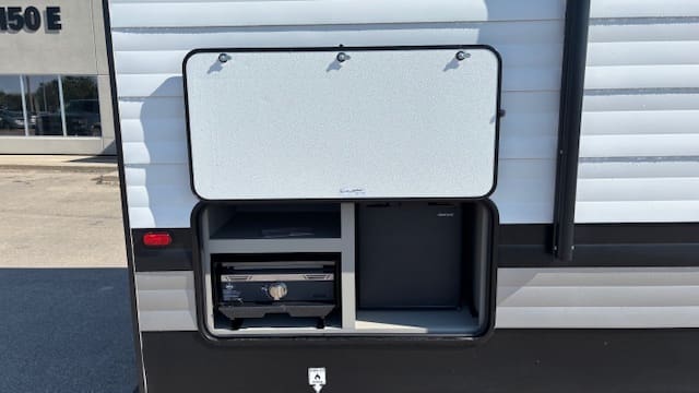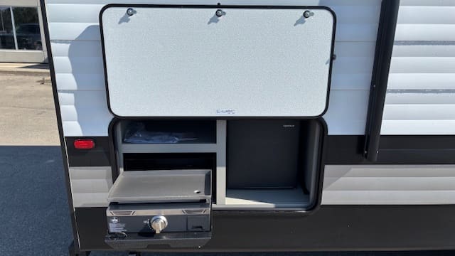 And you can stow your larger camping items in the exterior pass-through compartment.