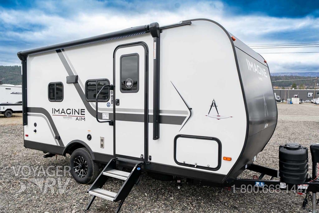 The New 2026 Grand Design Imagine AIM 16MLA, measuring approximately 19′ 8in in length, a no bunks floorplan, sleeping up to 4 people, corner queen, equipped with 1 slide-outs, and a sofa with table dining area.