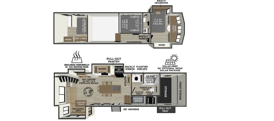 King size beds (2)2 Exterior refrigerators