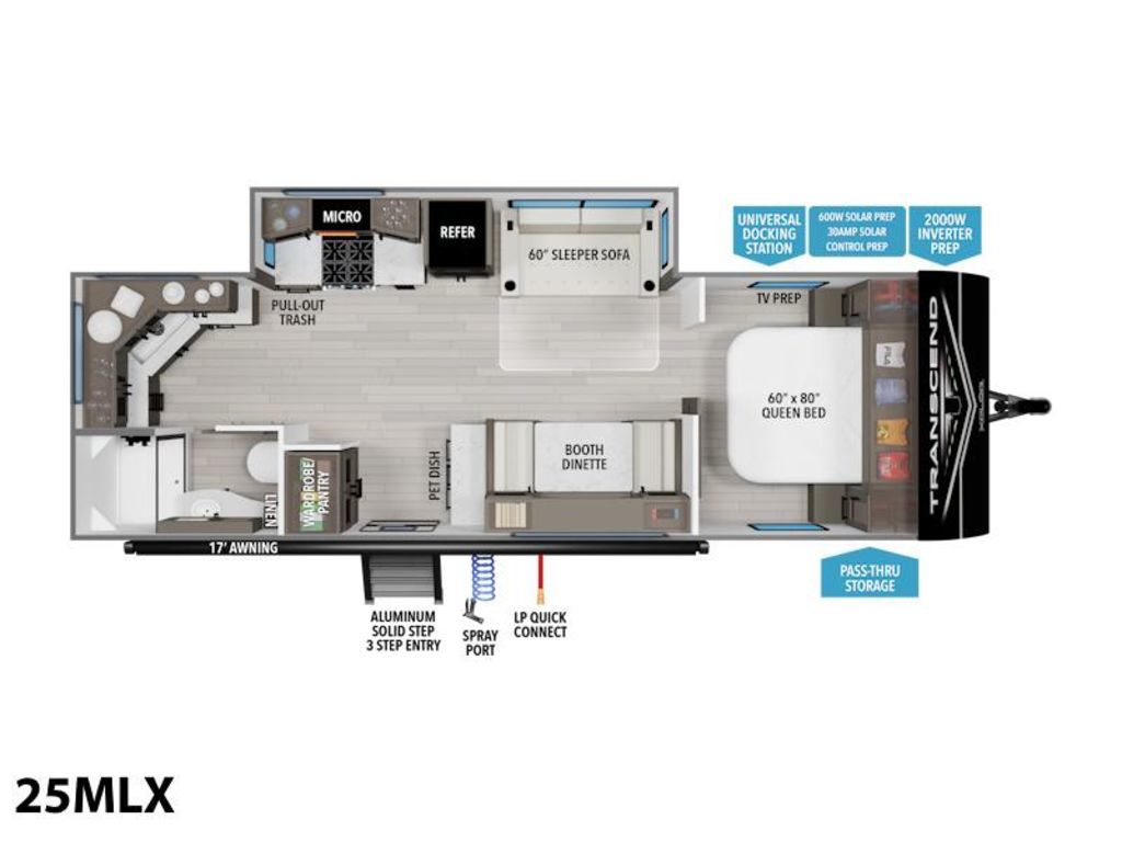 2026 Grand Design Transcend Xplor 25MLXFeaturing open floorplans and functional design not to mention towability for many of today’s half-ton trucks and SUVs, Transcend Xplor is built for adventure. Throw in unmatched quality backed by our industry-leading warranty and there’s no reason not to Xplor. Features Include 1 Slide Ducted A/C Power Awning On Demand Water Heater 10 Cu. Ft. Refrigerator Arctic Package Power Tongue Jack Front Stabilizer jacks Rear Stabilizer Jacks Microwave Home Theatre LED Lighting Pleated Shades Theatre Seating Outside Shower Outside Speakers Solar Panel 165 Watts Weight 6158 Lbs.