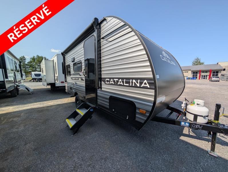 Catalina 154RDX 2026 une roulotte compacte et pratique pour vos escapades sur la route. Elle est équipée d’un lit Murphy d’un réfrigérateur 12 volts et de panneaux solaires offrant confort et autonomie pour des aventures sans compromis.