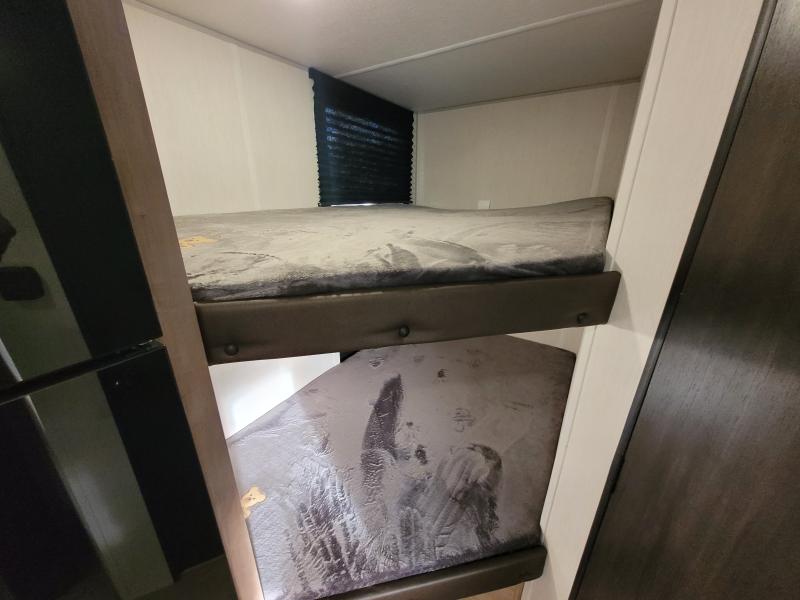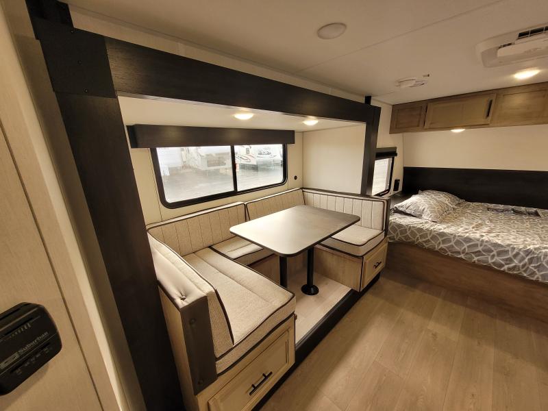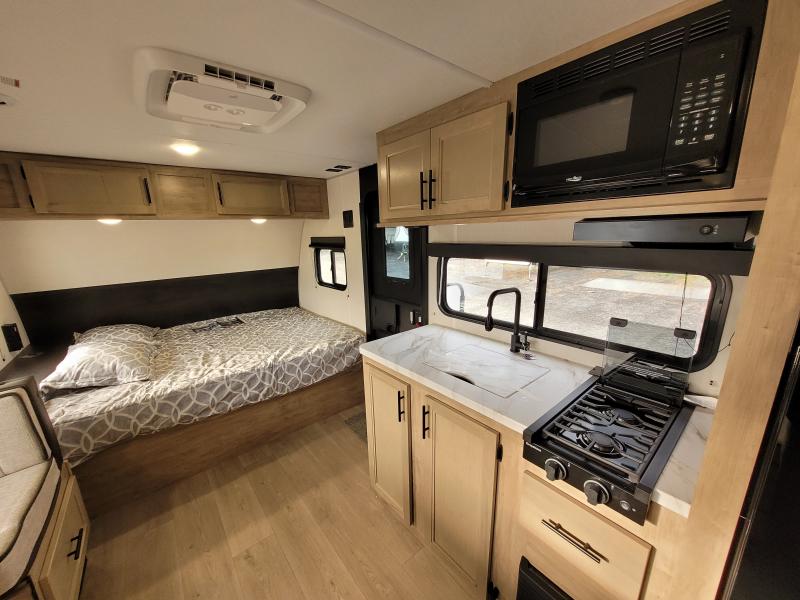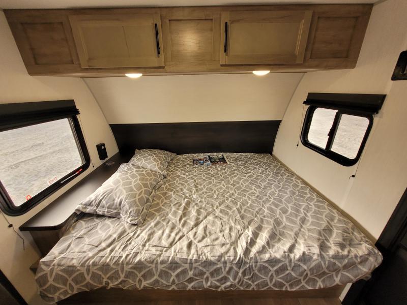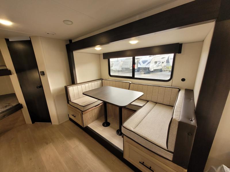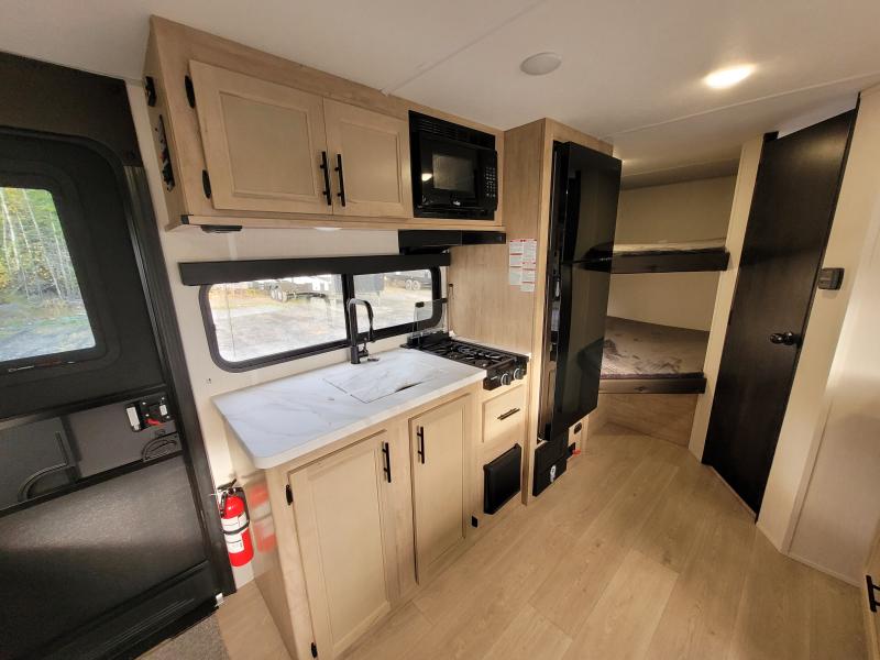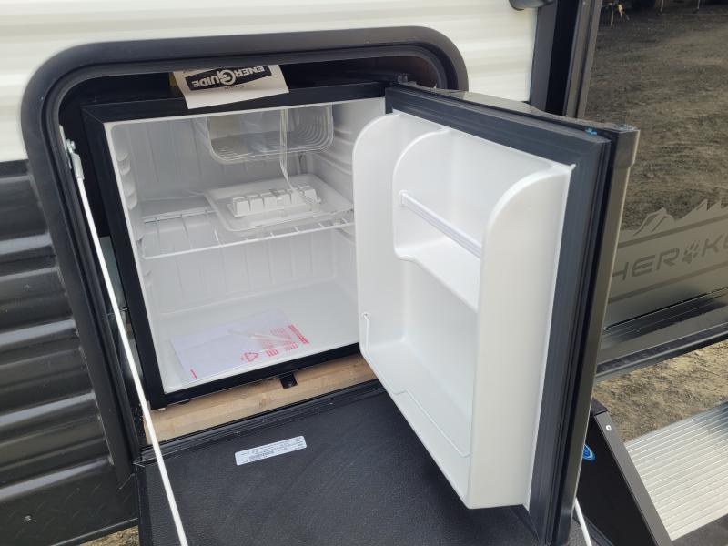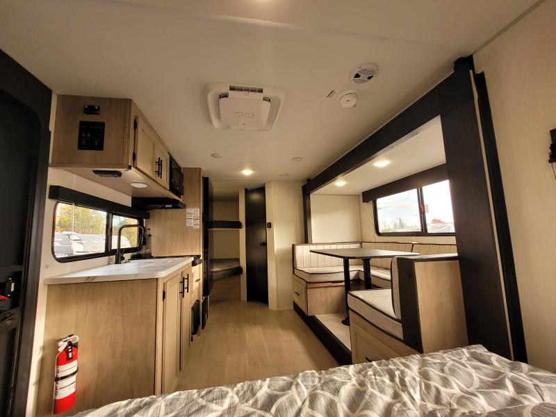Cherokee 17JW 2026 une roulotte familiale compacte et bien pensée parfaite pour les escapades en nature. Elle offre un lit queen des lits superposés et une banquette combinant confort et fonctionnalité pour toute la famille.