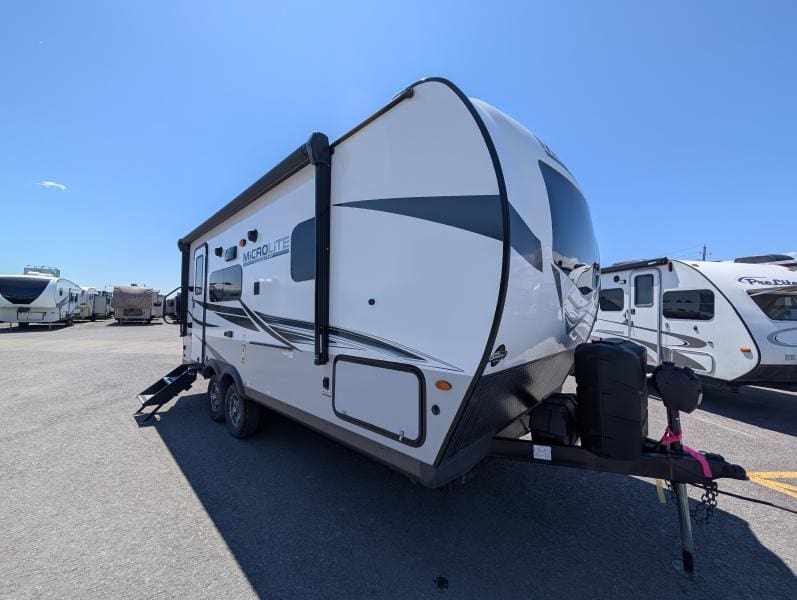 Flagstaff 21FBR 2022 une roulotte compacte et moderne conçue pour le confort et la praticité. Profitez du lit Murphy du slide topper de l’air climatisé 13 500 BTU et des panneaux solaires pour des escapades confortables et autonomes.