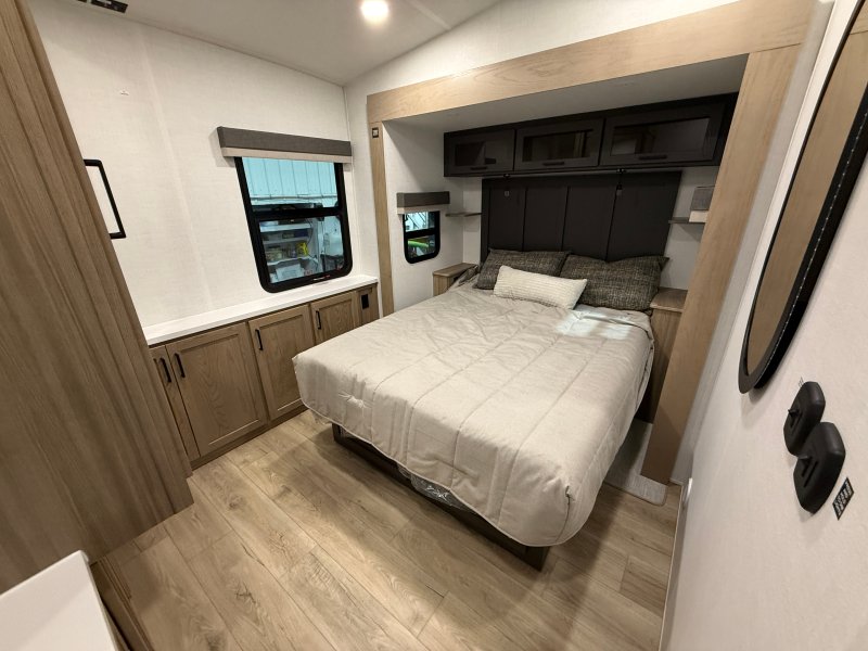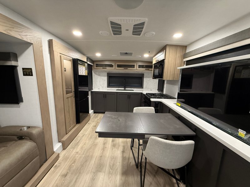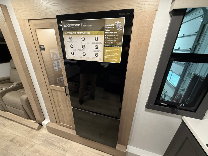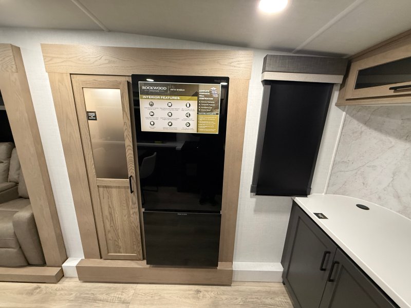 Rockwood Signature 290SK 2026 – Luxe espace et raffinement sur la route La Rockwood Signature 290SK 2026 est une roulotte haut de gamme conçue pour les campeurs qui recherchent un maximum de confort de qualité et d’élégance. Spacieuse et bien aménagée elle est idéale pour les couples ou les voyageurs qui souhaitent profiter d’un intérieur raffiné tout en conservant une excellente fonctionnalité. Son aménagement intérieur met de l’avant un espace de vie accueillant avec tables et chaises fauteuils style théâtre et télévision créant un environnement parfait pour la détente. Le lit queen offre un confort supérieur tandis que la préparation laveuse-sécheuse ajoute une touche de praticité pour les séjours prolongés. La mise à niveau auto-nivelante simplifie l’installation et le slide topper protège efficacement le mécanisme du slide. Côté équipements elle est dotée d’un air climatisé de 15 000 BTU d’un chauffage de 35 000 BTU d’un chauffe-eau de 12 gallons et d’un réfrigérateur 12 volts assurant un confort optimal en toute saison. Sa construction Azdel son réservoir chauffé ses pneus américains et son panneau solaire de 400 W témoignent de sa robustesse et de son autonomie accrue. La Rockwood Signature 290SK 2026 se démarque par son niveau de finition supérieur son espace généreux et ses équipements complets faisant d’elle un choix exceptionnel pour vivre le camping avec style et tranquillité d’esprit.