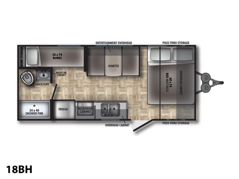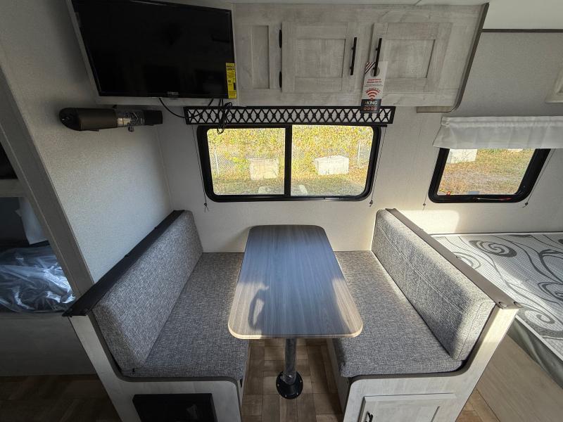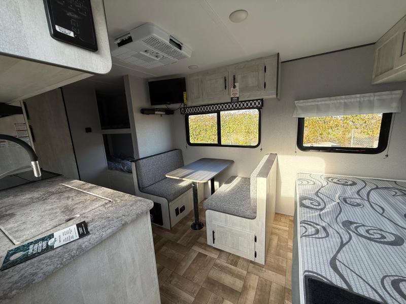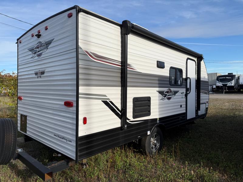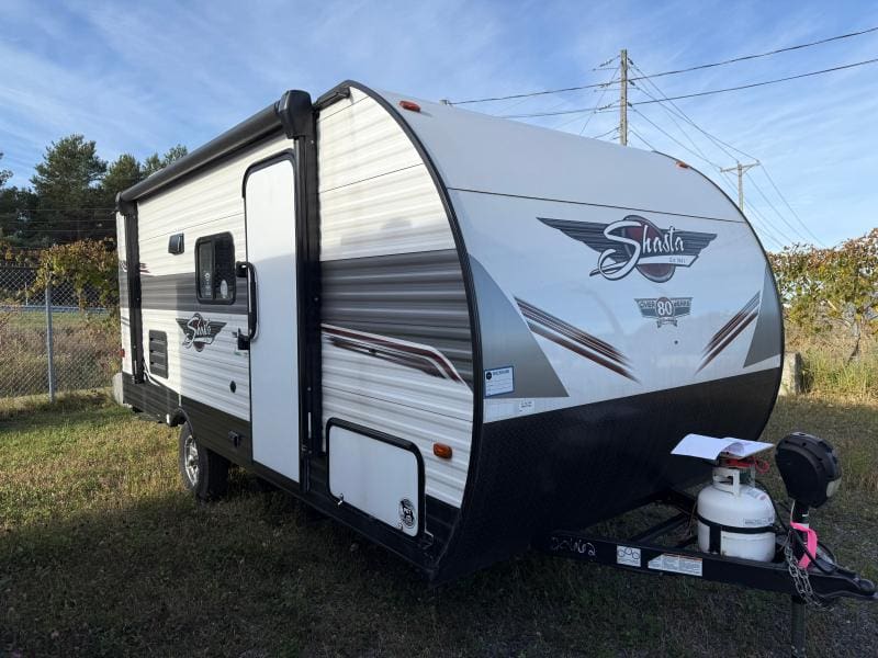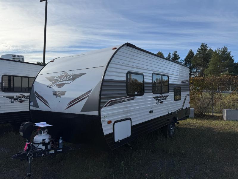 Shasta 18BH 2023 – Roulotte compacte et confortable avec banquette et lit queen idéale pour des escapades pratiques et relaxantes.