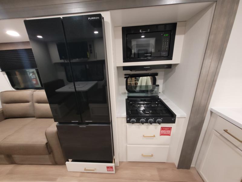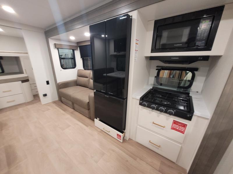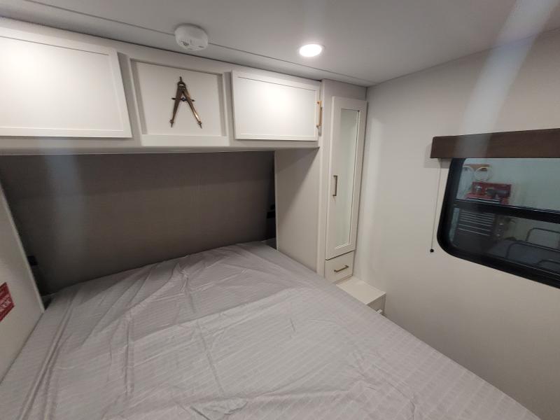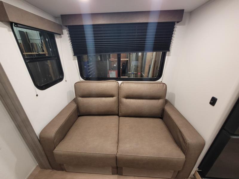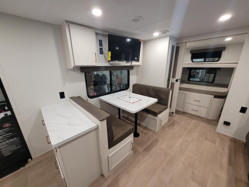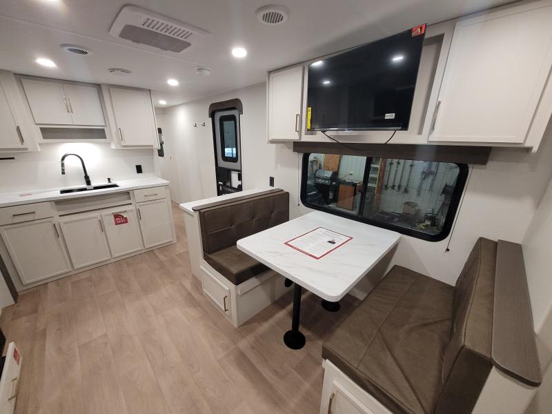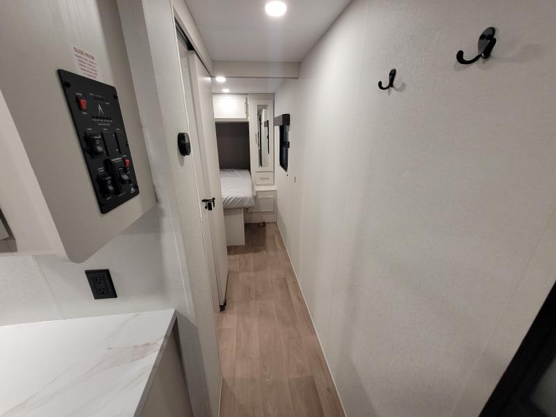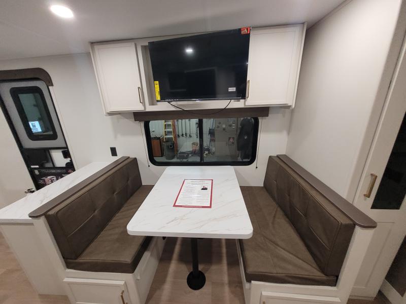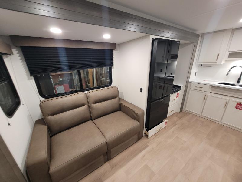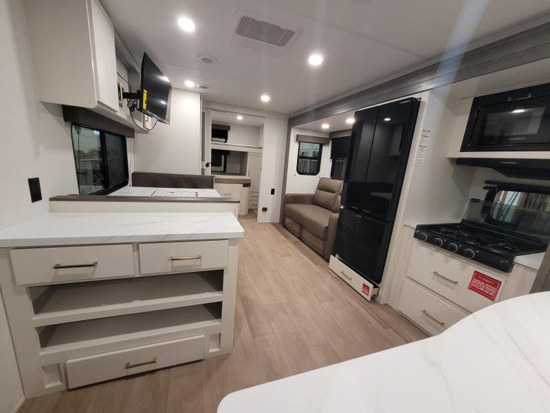 Transcend 295QBT 2026 Pensée pour les familles cette roulotte offre un espace fonctionnel et confortable. Elle comprend une banquette un sofa-lit une télévision pour le divertissement un marche-pied pratique un lit queen pour les adultes ainsi qu’une chambre enfant fermée avec lits superposés pour les plus jeunes. Un aménagement idéal pour les escapades familiales réussies.