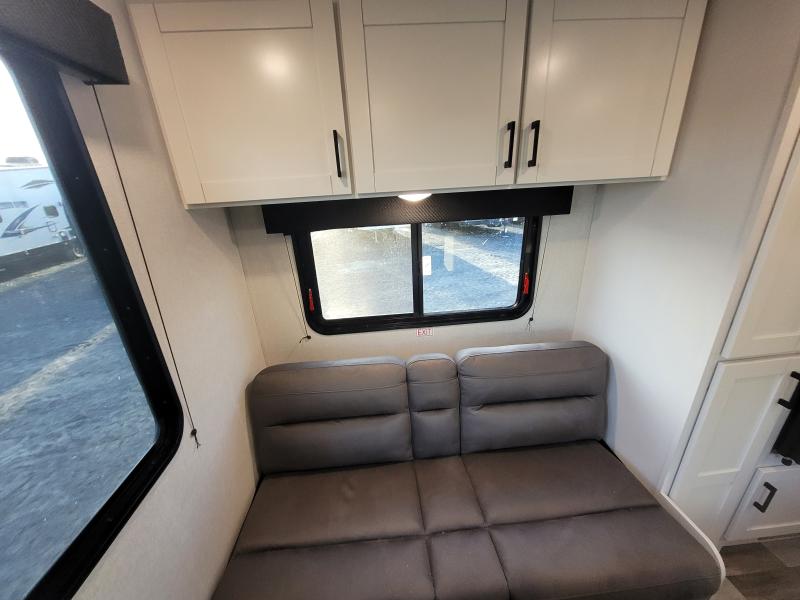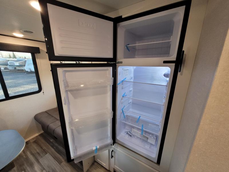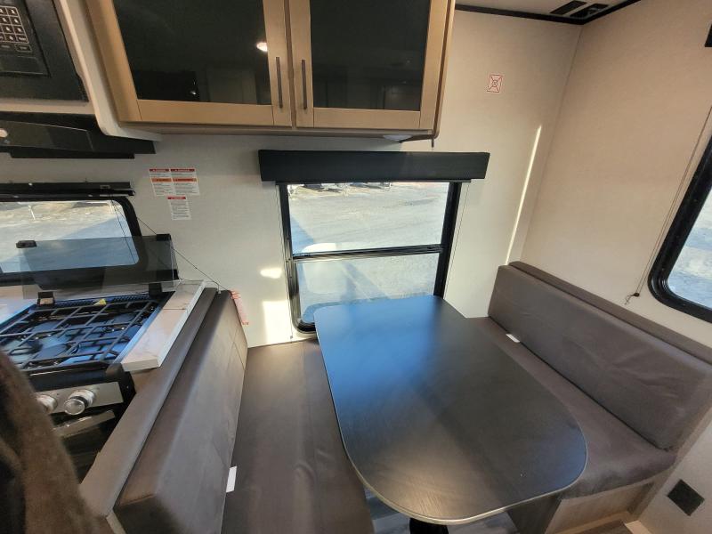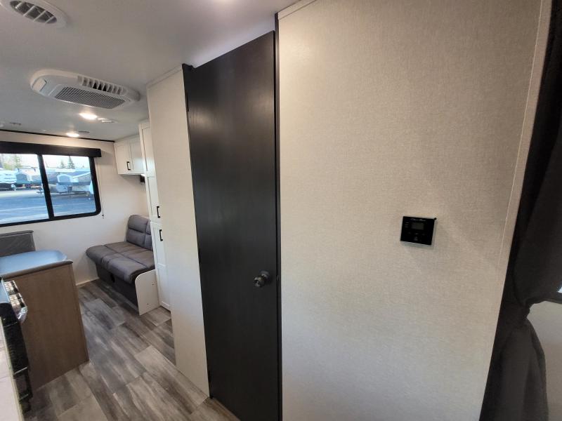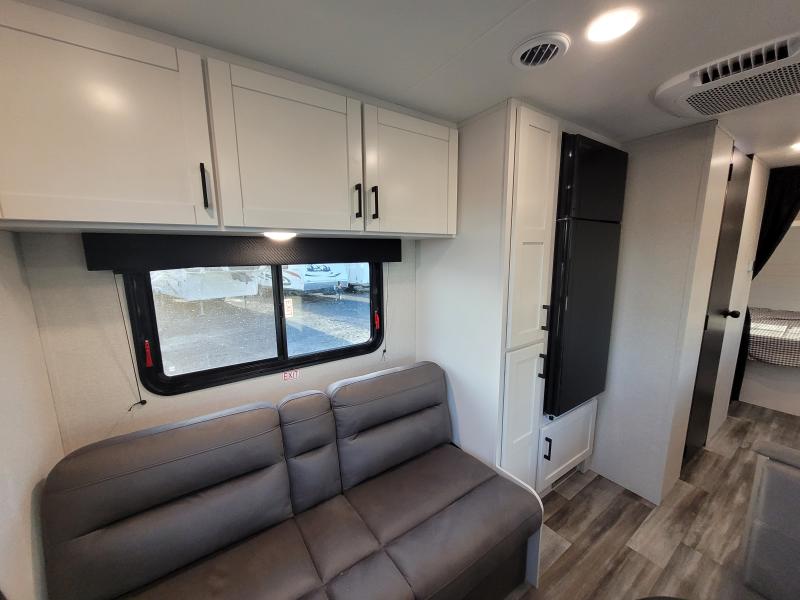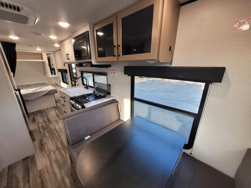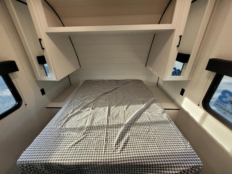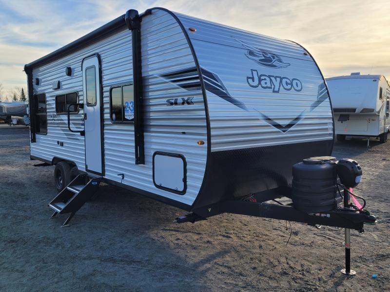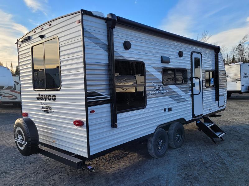Jay Flight 210QB 2026 une roulotte compacte conçue pour le confort et la simplicité. Elle est équipée d’un lit queen spacieux et d’une banquette conviviale idéale pour vos escapades en couple ou en duo.