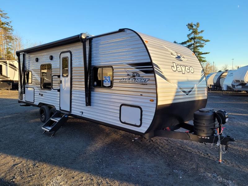 Jay Flight 260BH 2026 : Roulotte familiale spacieuse pensée pour l’aventure et le confort. Elle dispose d’un lit queen d’une banquette conviviale et de lits superposés parfaite pour accueillir toute la famille dans un format bien pensé.
