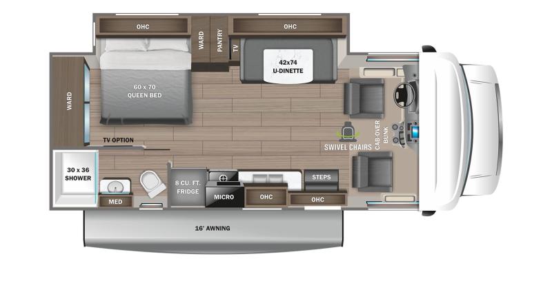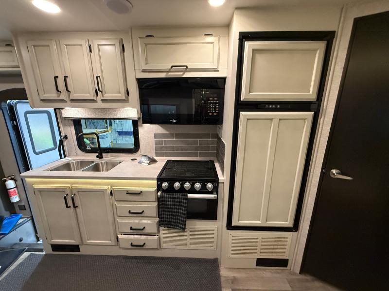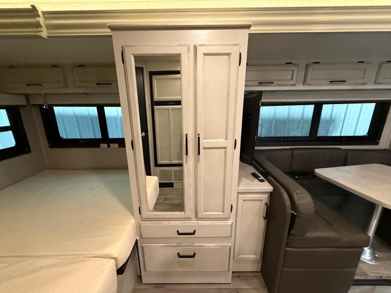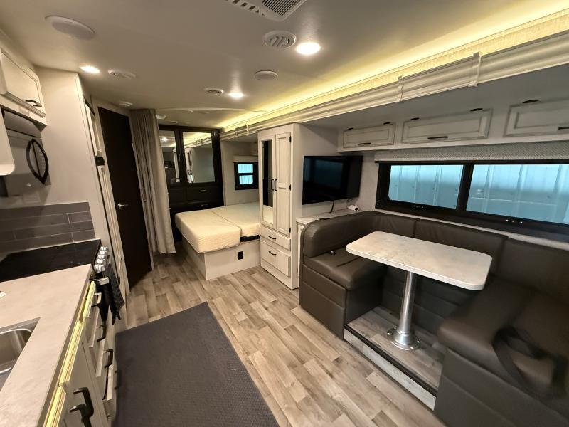 La Redhawk 24B 2023 offre un aménagement confortable et fonctionnel pour vos voyages. Elle comprend une banquette une télévision pour le divertissement un lit queen douillet ainsi qu’une échelle arrière pour un accès pratique au toit. Une classe C polyvalente idéale pour partir à l’aventure en toute simplicité.