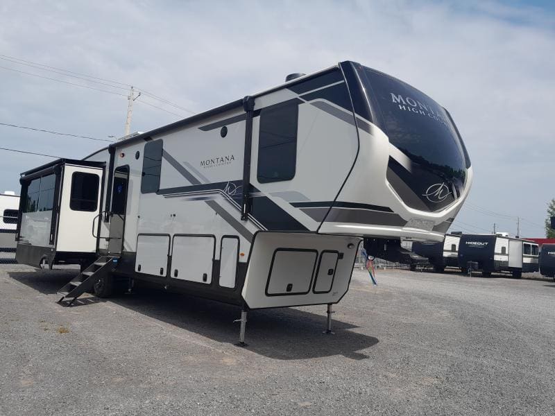 Découvrez le Montana 385BR une caravane de 40 pieds équipée d’un foyer air climatisé 15 000 BTU tables et chaises sofa lit et fauteuil style théâtre. Profitez également d’une télévision et d’un lit king pour des escapades tout confort. Poids : 13 900 lbs.