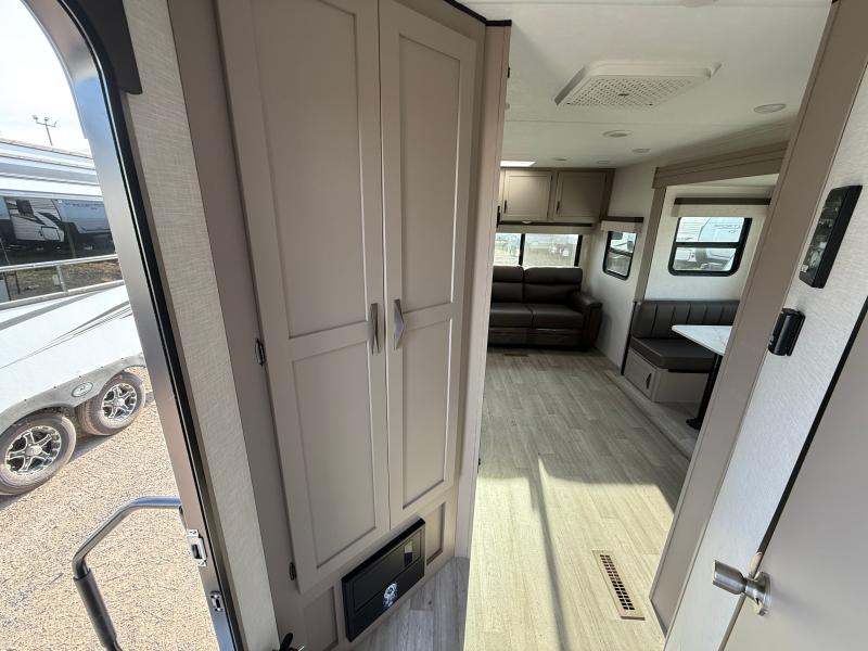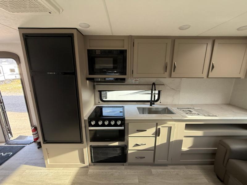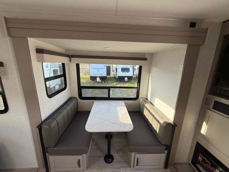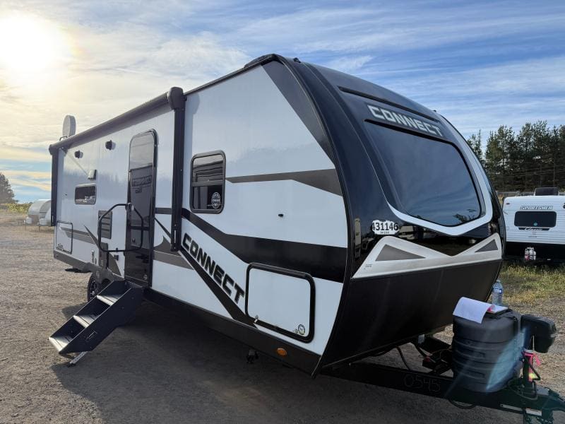 KZ Connect 241RLK 2024 – Roulotte moderne avec cuisinette extérieure banquette télévision et échelle arrière idéale pour des escapades confortables et pratiques.