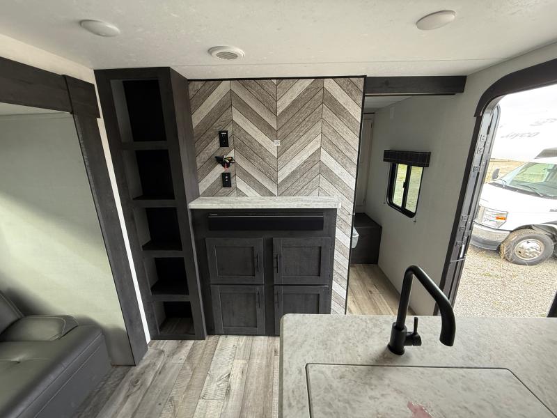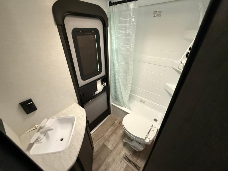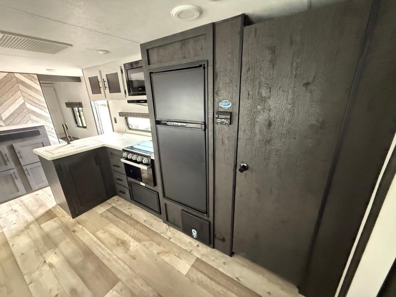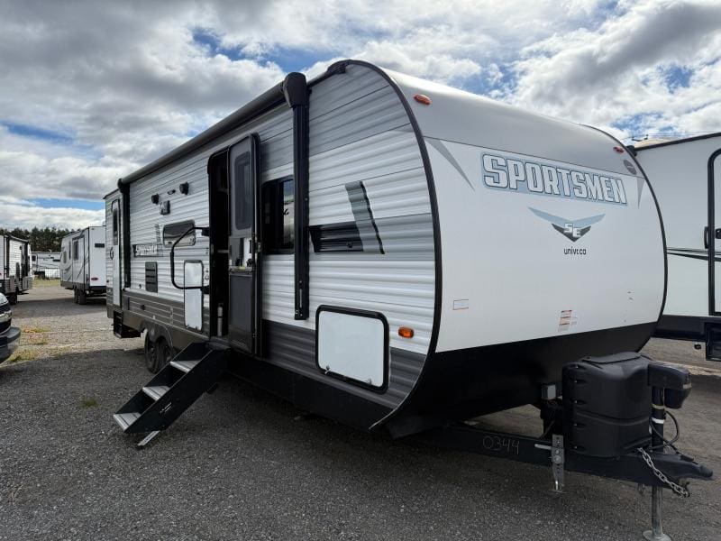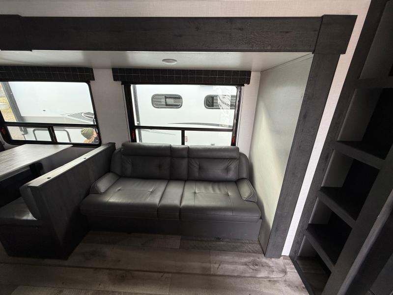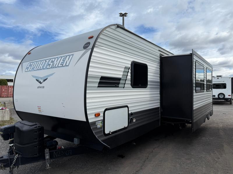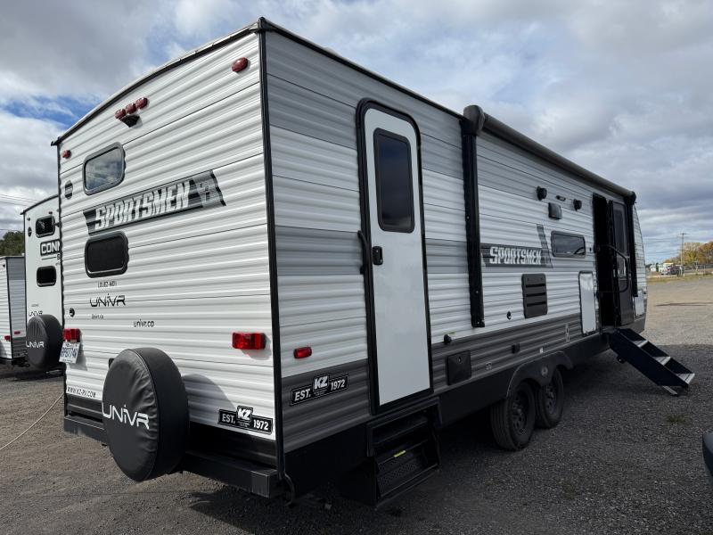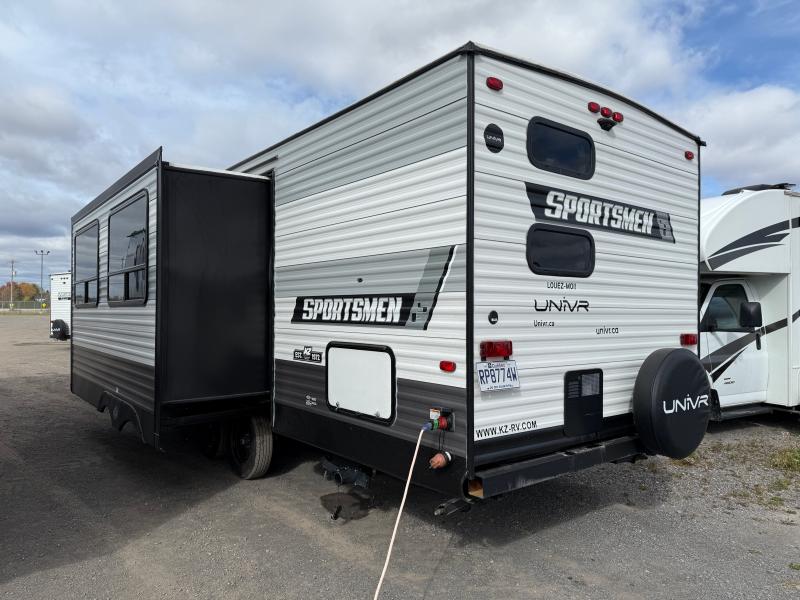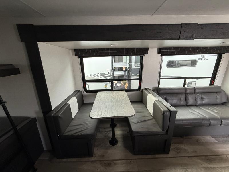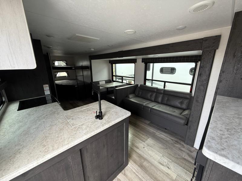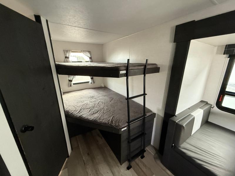 KZ Sportsmen 261BHKSE 2023 – Roulotte familiale avec banquette lit queen et lits superposés idéale pour des séjours confortables et pratiques en famille.