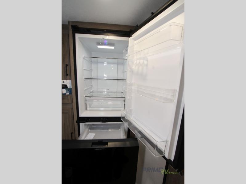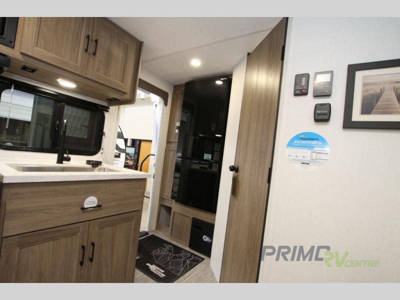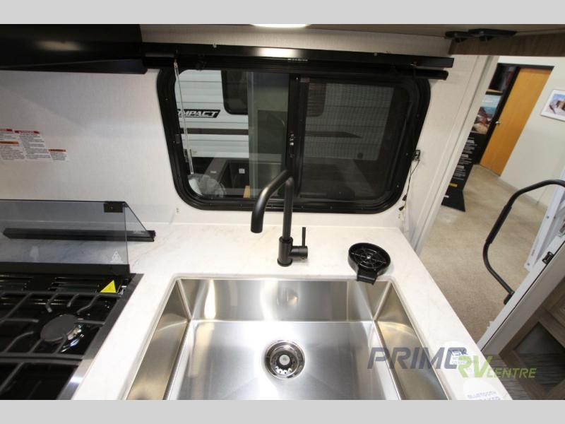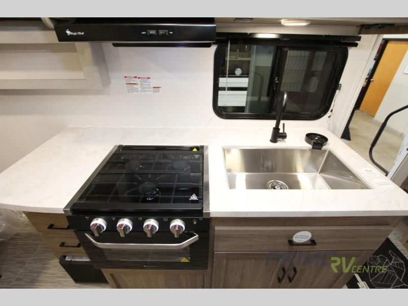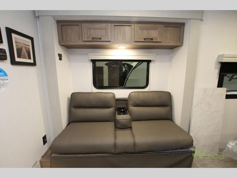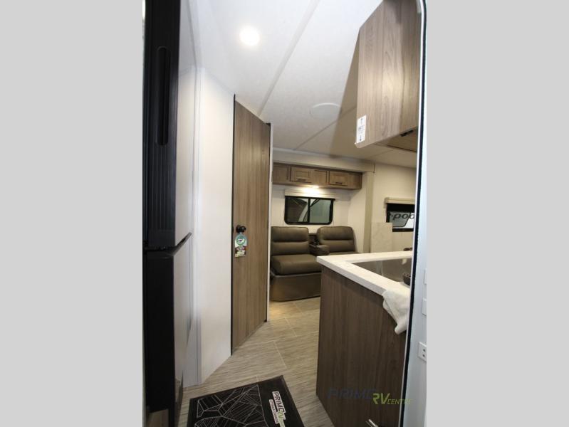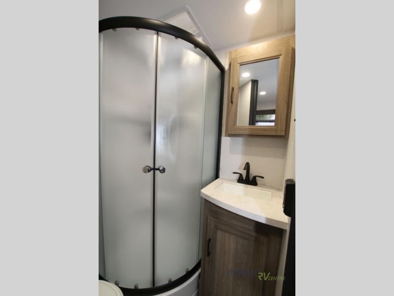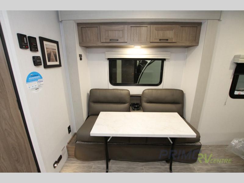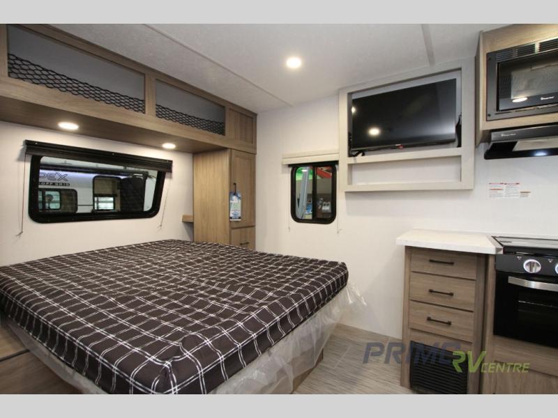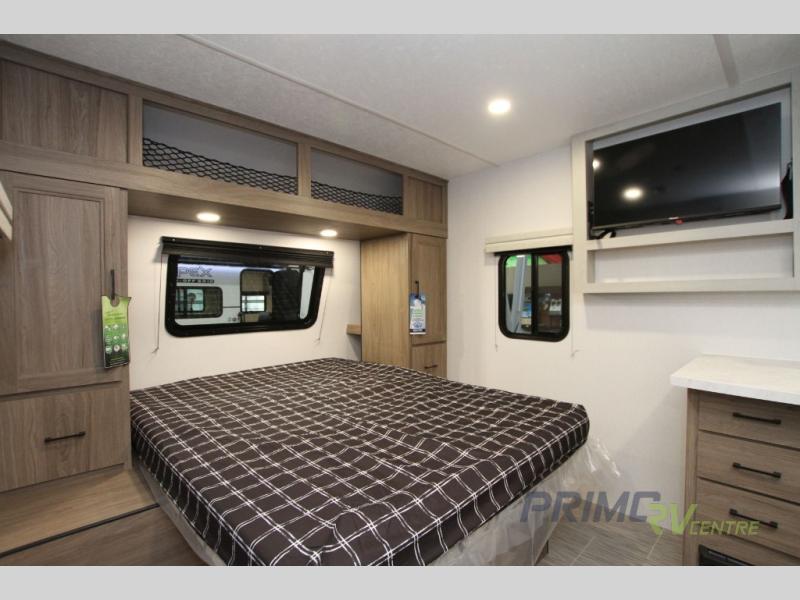 You’ll love spending time at the campground in this single slide out travel trailer! The 60″ x 80″ front queen bed includes vaulted underbed storage to keep your luggage or extra blankets out of the way, plus there are dual bedside wardrobes for your clothes. A sofa with a free-standing table will provide a place to relax and dine, and the full kitchen includes a dual-burner cooktop and microwave to cook meals each day. This unit also features a rear corner bath with a 32″ radius shower, a toilet, sink, and bath linen closet for clean towels!