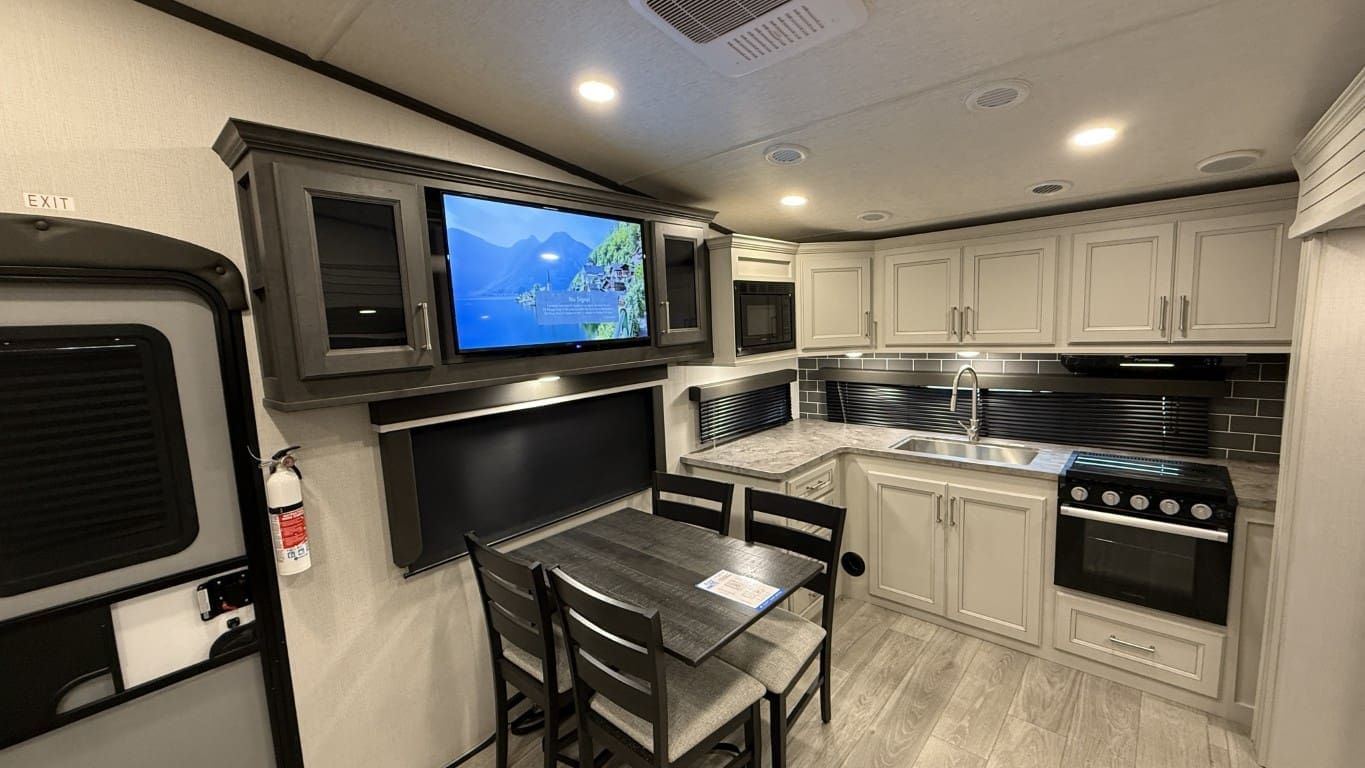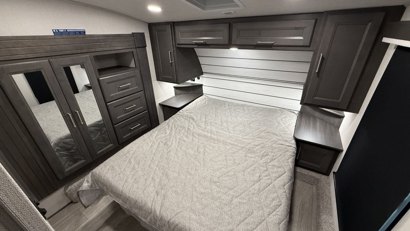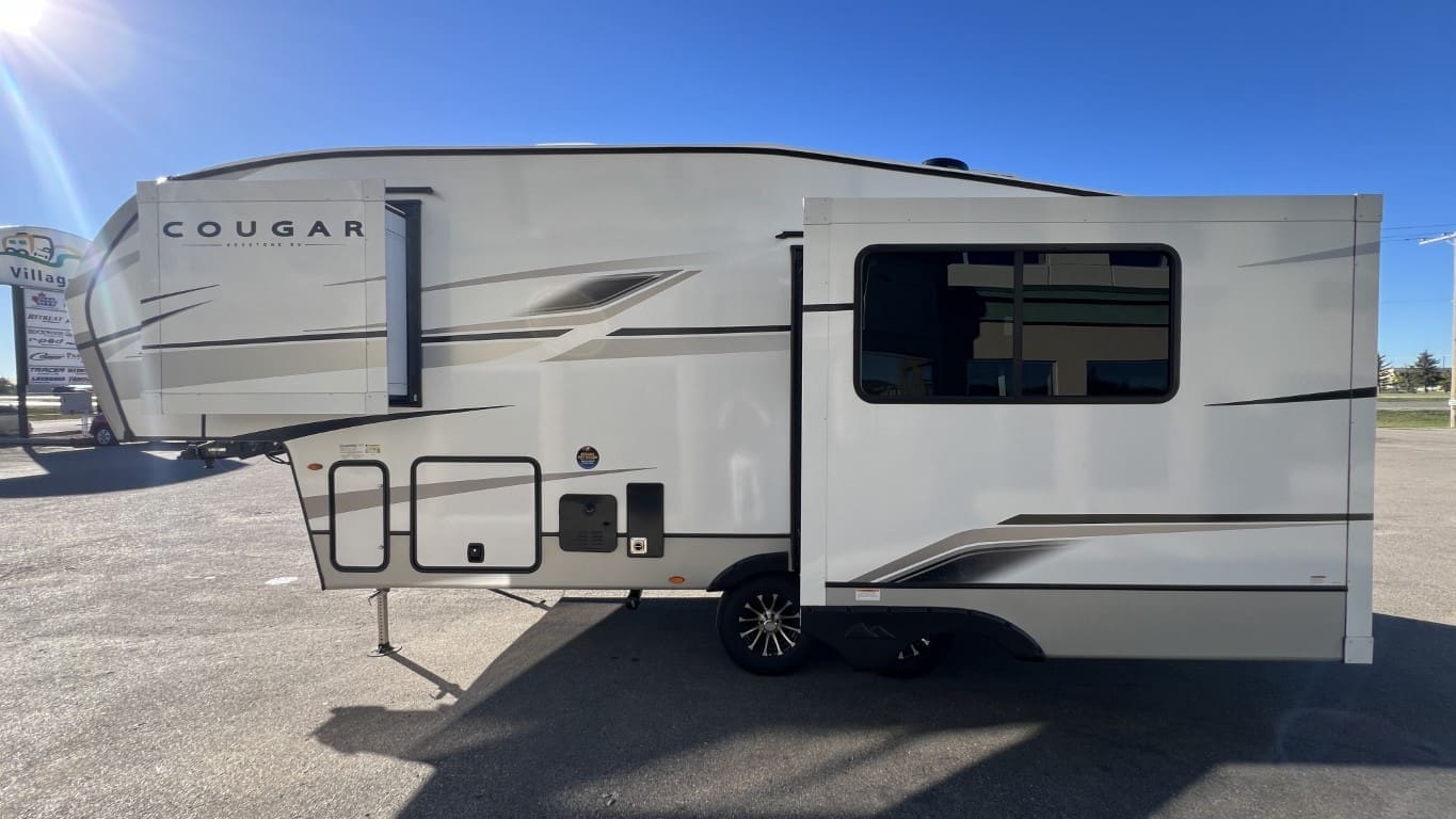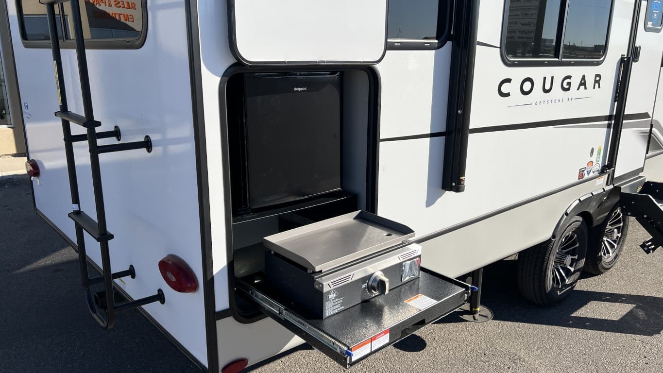 The 2025 Keystone Cougar 23MLE combines comfort and innovation in a compact design. Perfect for couples or small families, it features a modern rear kitchen with plenty of counter space, theater seating for relaxing evenings, and a private queen bed for restful nights. The slide-out maximizes space, creating a spacious living area, while SolarFlex™ 200 ensures energy efficiency for off-grid adventures. With ample storage inside and out, it’s ready for any journey.