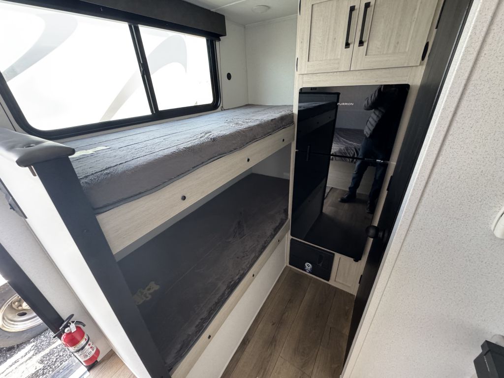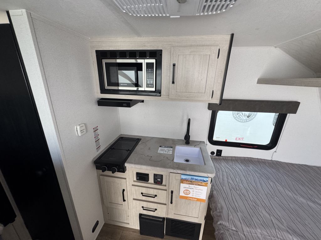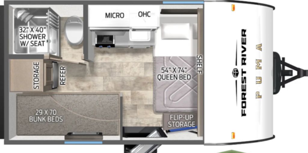 This is the 2026 Puma 122BHCE, weighing just over 2600lbs, and a length of 16’. This is perfect for anyone looking to tow with a small truck, SUV, or minivan.As you walk in the door, you are greeted by your queen-size bed with tons of storage above and lots of storage at the foot of the bed with access to your passthrough storage below.Your kitchen area is equipped with tons of counter space, a two-burner gas range with a high-rise faucet and a large sink. Below are lots more cupboards and plugs for all appliances. At the rear, you have your double bunks, fridge with storage above, and a two-piece bathroom with a foot flush toilet, and a large shower stall.