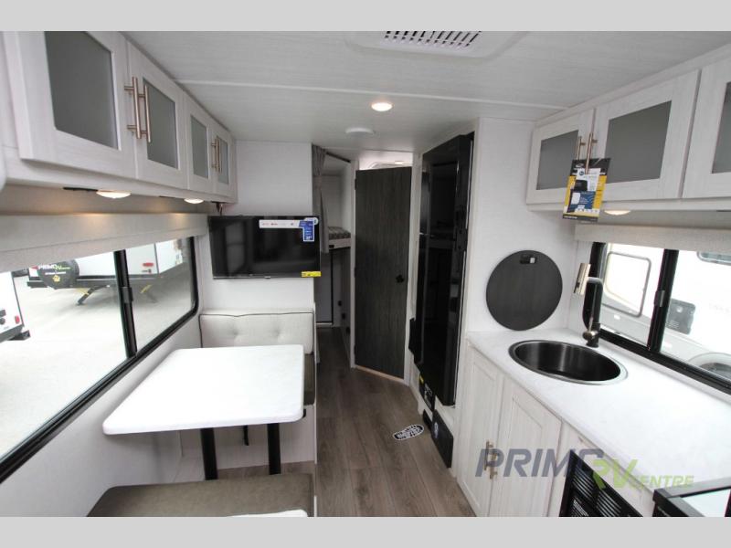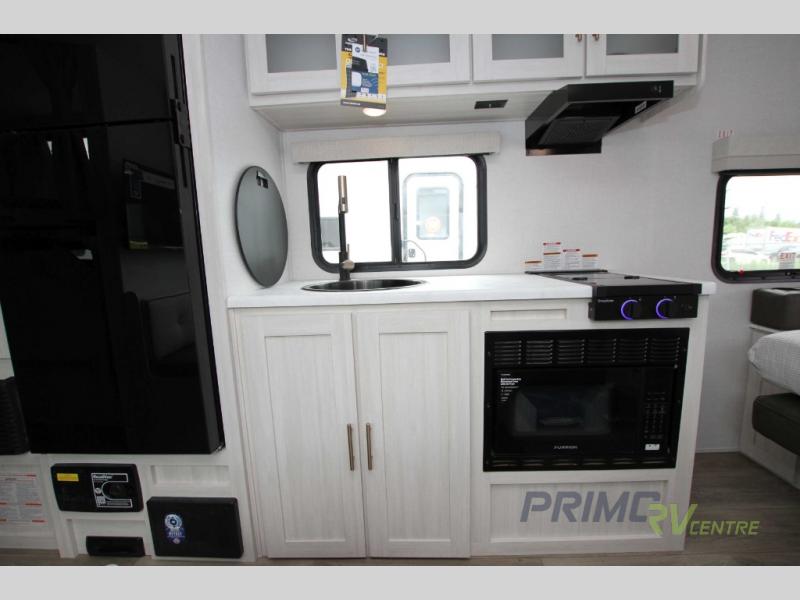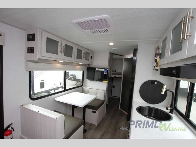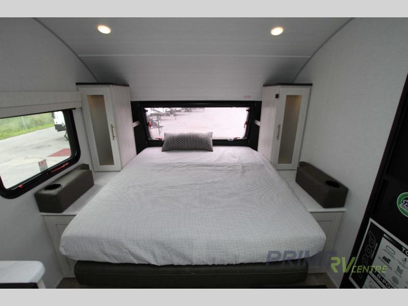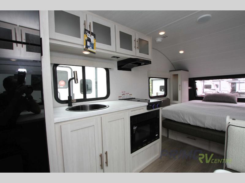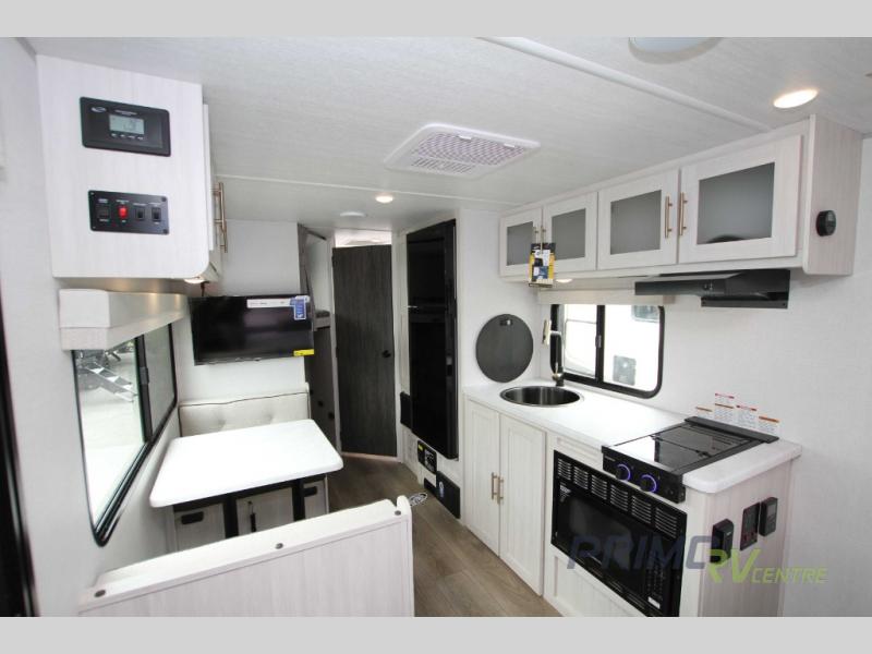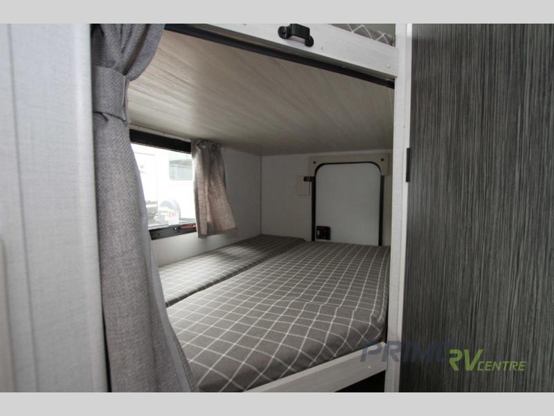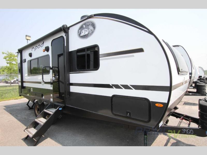 With any R-Pod travel trailer by Forest River, you will enjoy affordable luxury at the lowest tow weight in its class! There is a sealed underbelly with forced heat, a curved dual-pane acrylic front window with a bug screen and night shade, plus a large roof mounted solar panel for off-grid capabilities. The 15K A/C unit will keep you comfortable during the summer camping months, and the tankless water heater will provide endless hot showers after hiking, biking, swimming and more! Each model also includes a black glass friction hinge entrance door, roof ladder prep, exterior motion lighting, plus a hot and cold exterior spray port to wash off sand from the beach. Inside, you’ll enjoy seamless Surf-X kitchen countertops, blackout roller shades, and a central vacuum system for hassle-free cleaning!