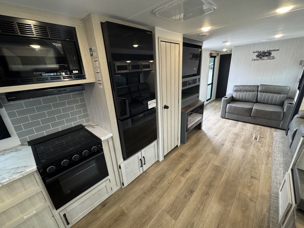 As you enter the 2026 Puma 31FKRK, you’re immediately greeted by a sense of space and comfort. With its front kitchen, dual slide-out living room, and private rear bedroom, this layout is perfect for longer trips, seasonal camping, or even setting up as a semi-permanent retreat. Whether you’re traveling as a couple or entertaining guests, this trailer has the room and amenities to make every trip feel like home.