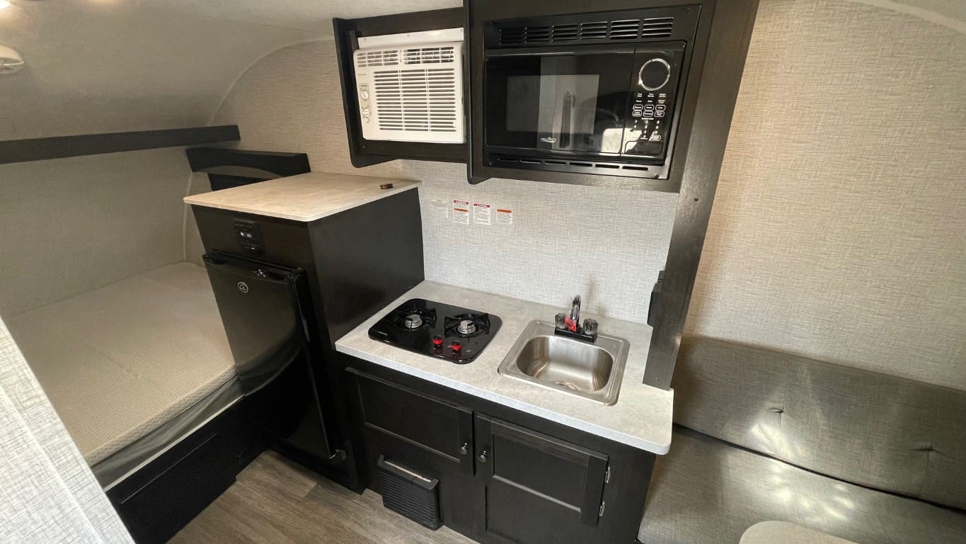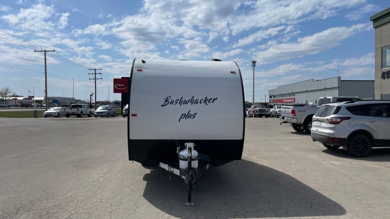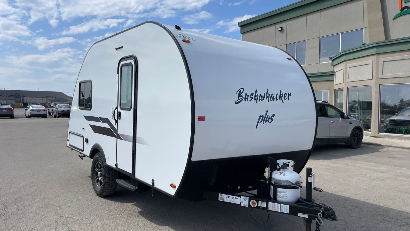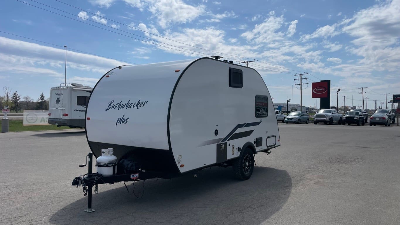The 2022 Bushwhacker Plus 17FL is a lightweight teardrop-style travel trailer built for ease of towing and off-grid capability. Perfect for couples or solo adventurers, compact wet bath, and a well-equipped kitchen with a 2-burner cooktop and microwave. With rugged all-terrain tires, solar prep, and a furnace for cooler nights, this unit is ready for wherever the road takes you.
