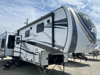 Looking for a fifth wheel to enjoy while towing as well as while staying at the campgrounds that offers enough space for two or more to always be comfortable? You have found it! This Open Range provides a spacious main living and kitchen area with dual opposing slides, plus full kitchen amenities including a residential convection microwave, a kitchen island to prepare meals and clean the dishes, a large pantry, and a free-standing table with chairs to dine at. The theater seating includes a heat and massage function and the tri-fold sofa with adjustable headrests provides sleeping space as well. You can sleep easily in the master bedroom with access to the double entry bath, plus the bedroom includes plenty of storage, a mirrored wardrobe and a space to add a washer/dryer option, and more!
