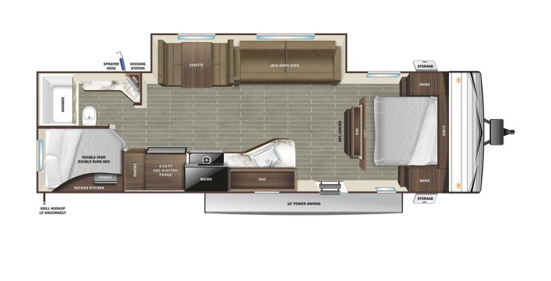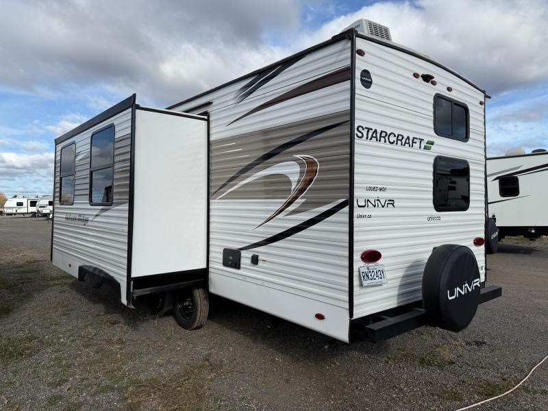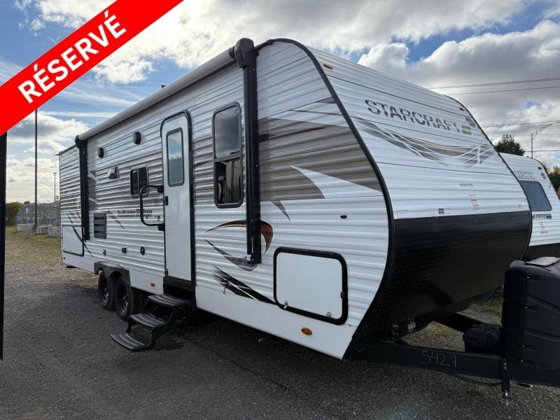 Starcraft Autumn Ridge 26BHS 2022 – Roulotte familiale avec cuisinette extérieure banquette lit queen et lits superposés idéale pour des escapades confortables et pratiques.