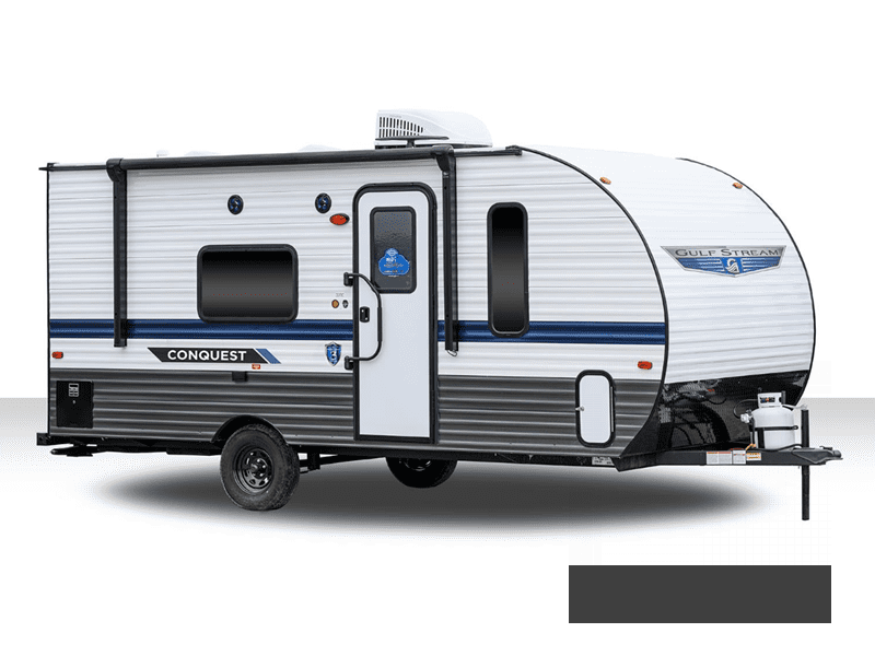 You will find that each one of these Gulf Stream Conquest Super Lite travel trailers offer top quality, roomy, comfortable accommodations, and well-proven models inspired by those who enjoy the outdoors! There are built with a solid construction with a one-piece seamless roof that has strong wood roof decking, thick energy-saving blankets of hand-cut fiberglass insulation, and an aluminum siding with a baked enamel finish that will hold up through every adventure. Underneath the high-performance vinyl flooring throughout is a tubular steel frame that holds these units together. The craft-made cabinetry is a stylish storage space, and the multiple 110V and USB power outlets are found in the handiest places to keep your electronics charged for the whole trip. There are many standard features which will make camping easier, but you might also want to add a few optional features too like the double SolidStep® entry step or the Bluetooth radio with two interior and two exterior speakers to crank up the tunes!